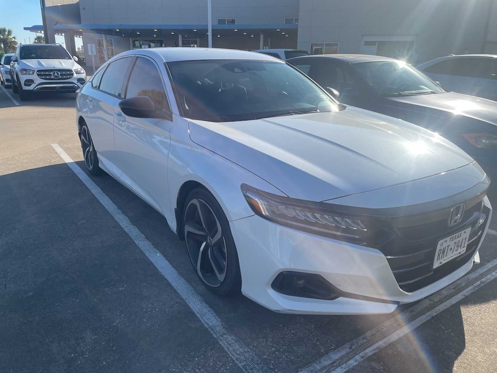 Certified. LOCAL TRADE, BLUETOOTH, CLEAN CARFAX, NON-SMOKER, CARFAX ONE OWNER, Lane Monitor!, ** SUNROOF, ** HEATED SEATS, ** REARVIEW CAMERA, ** NAVIGATION SYSTEM, ** KEYLESS ENTRY, ** APPLE CARPLAY, ** BLUETOOTH, HANDS-FREE, ** BLIND SPOT ALERT, ** KEYLESS START, ** PREMIUM WHEELS, ** PREMIUM SOUND SYSTEM, ** ANDROID AUTO, ** LANE DEPARTURE WARNING, ** SATELLITE RADIO, ** STEERING WHEEL CONTROLS, ** ALARM SYSTEM, ** WIFI HOTSPOT, ** AUXILIARY AUDIO INPUT, ** LOCAL TRADE-IN, ** LOCALLY OWNED AND SERVICED, ** ALLOY WHEELS, Accord Sport, HondaTrue Used Certified, 4D Sedan, 1.5T I4 DOHC 16V Turbocharged VTEC, CVT, FWD, White, Black w/Fabric Seat Trim, 4-Wheel Disc Brakes, 8 Speakers, ABS brakes, Adaptive Cruise Control: Adaptive Cruise Control (ACC) with Low-Speed Follow, Air Conditioning, Alloy wheels, AM/FM radio, Apple CarPlay/Android Auto, Auto High-beam Headlights, Automatic temperature control, Brake assist, Bumpers: body-color, Delay-off headlights, Driver door bin, Driver vanity mirror, Dual front impact airbags, Dual front side impact airbags, Electronic Stability Control, Emergency communication system: HondaLink, Exterior Parking Camera Rear, Fabric w/Synthetic Leather Seat Trim, Forward collision: Collision Mitigation Braking System (CMBS) + FCW mitigation, Four wheel independent suspension, Front anti-roll bar, Front Bucket Seats, Front Center Armrest, Front dual zone A/C, Front fog lights, Front reading lights, Fully automatic headlights, Illuminated entry, Knee airbag, Lane Departure Warning System, Leather Shift Knob, Leather steering wheel, Low tire pressure warning, Occupant sensing airbag, Outside temperature display, Overhead airbag, Overhead console, Panic alarm, Passenger door bin, Passenger vanity mirror, Power door mirrors, Power driver seat, Power steering, Power windows, Radio data system, Radio: 180-Watt AM/FM Audio System, Rear anti-roll bar, Rear seat center armrest, Rear window defroster, Remote keyless entry, Security system, Speed control, Speed-sensing steering, Speed-Sensitive Wipers, Split folding rear seat, Spoiler, Steering wheel mounted audio controls, Tachometer, Telescoping steering wheel, Tilt steering wheel, Traction control, Trip computer, Variably intermittent wipers, Wheels: 19 Machine-Finished Alloy w/Black Inserts, Accord Sport, 4D Sedan, 1.5T I4 DOHC 16V Turbocharged VTEC, CVT, FWD, White, Black w/Fabric Seat Trim, 4-Wheel Disc Brakes, 8 Speakers, ABS brakes, Adaptive Cruise Control: Adaptive Cruise Control (ACC) with Low-Speed Follow, Air Conditioning, Alloy wheels, AM/FM radio, Apple CarPlay/Android Auto, Auto High-beam Headlights, Automatic temperature control, Brake assist, Bumpers: body-color, Delay-off headlights, Driver door bin, Driver vanity mirror, Dual front impact airbags, Dual front side impact airbags, Electronic Stability Control, Emergency communication system: HondaLink, Exterior Parking Camera Rear, Fabric w/Synthetic Leather Seat Trim, Forward collision: Collision Mitigation Braking System (CMBS) + FCW mitigation, Four wheel independent suspension, Front anti-roll bar, Front Bucket Seats, Front Center Armrest, Front dual zone A/C, Front fog lights, Front reading lights, Fully automatic headlights, Illuminated entry, Knee airbag, Lane Departure Warning System, Leather Shift Knob, Leather steering wheel, Low tire pressure warning, Occupant sensing airbag, Outside temperature display, Overhead airbag, Overhead console, Panic alarm, Passenger door bin, Passenger vanity mirror, Power door mirrors, Power driver seat, Power steering, Power windows, Radio data system, Radio: 180-Watt AM/FM Audio System, Rear anti-roll bar, Rear seat center armrest, Rear window defroster, Remote keyless entry, Security system, Speed control, Speed-sensing steering, Speed-Sensitive Wipers, Split folding rear seat, Spoiler, Steering wheel mounted audio controls, Tachometer, Telescoping steering wheel, Tilt steering wheel, Traction control, Trip computer, Variably intermittent wipers, Wheel