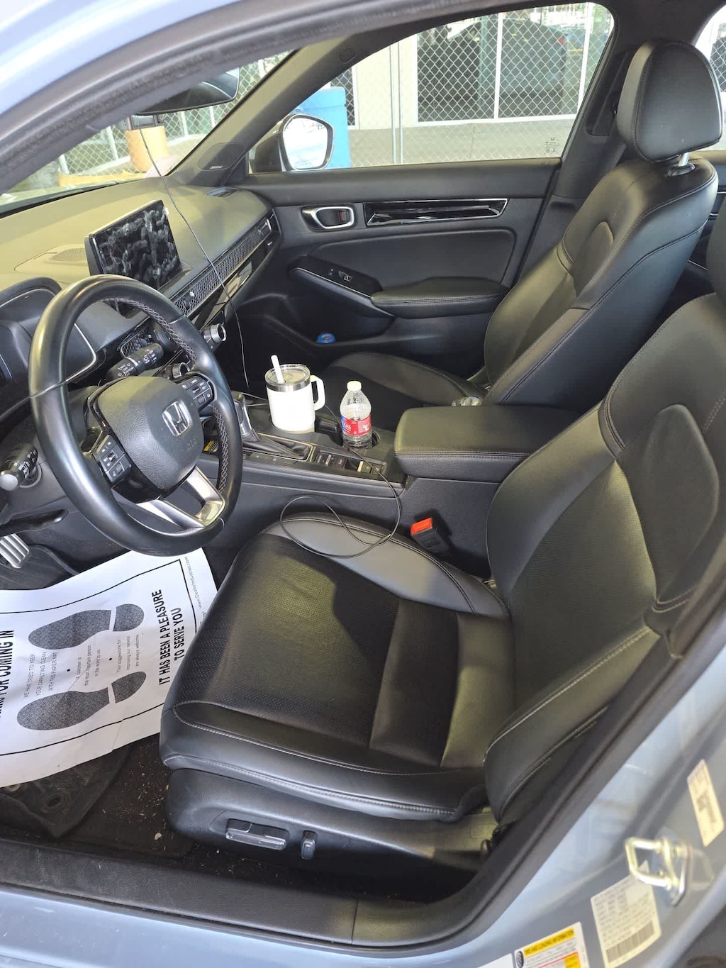 Certified. LOCAL TRADE, BLUETOOTH, CLEAN CARFAX, NON-SMOKER, CARFAX ONE OWNER, Service Records Available!, ** LEATHER SEATS, ** SUNROOF, ** REARVIEW CAMERA, ** NAVIGATION SYSTEM, ** BLUETOOTH, HANDS-FREE, ** STEERING WHEEL CONTROLS, ** AUXILIARY AUDIO INPUT, ** LOCAL TRADE-IN, ** ALLOY WHEELS, Civic Sport Touring, HondaTrue Used Certified, 4D Hatchback, 1.5L I4 DOHC 16V, CVT, FWD, Morning Mist Metallic, Black w/Leather Seat Trim, 12 Speakers, 18 Alloy Wheels, 4-Wheel Disc Brakes, ABS brakes, Adaptive Cruise Control: Adaptive Cruise Control (ACC) with Low-Speed Follow, Air Conditioning, Alloy wheels, AM/FM radio: SiriusXM, Apple CarPlay/Android Auto, Auto High-beam Headlights, Auto-dimming Rear-View mirror, Automatic temperature control, Blind Spot Information (BSI) System warning, Bose Premium Audio System, Brake assist, Bumpers: body-color, Compass, Delay-off headlights, Driver door bin, Driver vanity mirror, Dual front impact airbags, Dual front side impact airbags, Electronic Stability Control, Emergency communication system: HondaLink, Exterior Parking Camera Rear, Forward collision: Collision Mitigation Braking System (CMBS) + FCW mitigation, Four wheel independent suspension, Front anti-roll bar, Front Bucket Seats, Front Center Armrest, Front dual zone A/C, Front fog lights, Front reading lights, Fully automatic headlights, Garage door transmitter: HomeLink, Heated door mirrors, Heated Front Bucket Seats, Heated front seats, Illuminated entry, Knee airbag, Lane departure: Lane Keeping Assist System (LKAS) active, Leather Shift Knob, Leather steering wheel, Leather-Trimmed Seating Surfaces, Low tire pressure warning, Navigation system: Honda Satellite-Linked Navigation System, Occupant sensing airbag, Outside temperature display, Overhead airbag, Overhead console, Panic alarm, Passenger door bin, Passenger vanity mirror, Power door mirrors, Power driver seat, Power moonroof, Power passenger seat, Power steering, Power windows, Radio data system, Rain sensing wipers, Rear anti-roll bar, Rear seat center armrest, Rear side impact airbag, Rear window defroster, Rear window wiper, Remote keyless entry, Security system, Speed control, Speed-sensing steering, Split folding rear seat, Steering wheel mounted audio controls, Tachometer, Telescoping steering wheel, Tilt steering wheel, Traction control, Trip computer, Turn signal indicator mirrors, Variably intermittent wipers, Voltmeter, Civic Sport Touring, 4D Hatchback, 1.5L I4 DOHC 16V, CVT, FWD, Morning Mist Metallic, Black w/Leather Seat Trim.