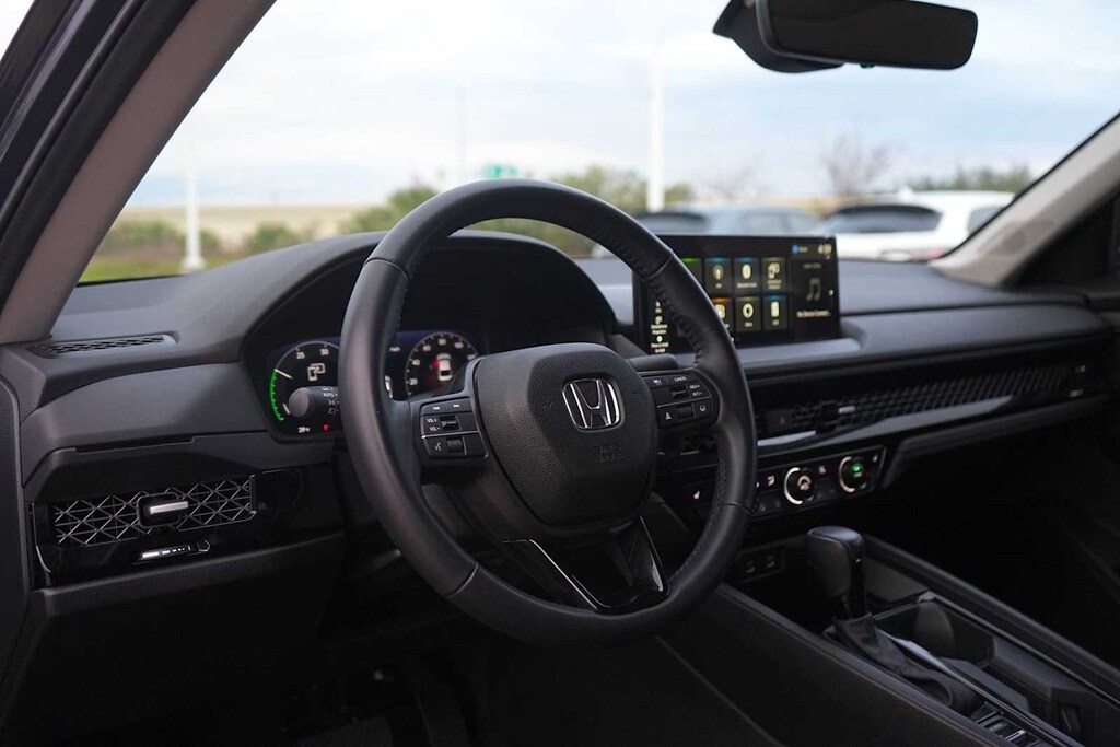 Certified. LOCAL TRADE, BLUETOOTH, CLEAN CARFAX, NON-SMOKER, CARFAX ONE OWNER, Service Records Available!, Remainder of Factory Warranty Still Applies!, ** LEATHER SEATS, ** SUNROOF, ** HEATED SEATS, ** REARVIEW CAMERA, ** NAVIGATION SYSTEM, ** KEYLESS ENTRY, ** APPLE CARPLAY, ** REMOTE ENGINE START, ** BLUETOOTH, HANDS-FREE, ** BLIND SPOT ALERT, ** KEYLESS START, ** PREMIUM WHEELS, ** PREMIUM SOUND SYSTEM, ** ROOF RACK, ** ANDROID AUTO, ** LANE DEPARTURE WARNING, ** SATELLITE RADIO, ** STEERING WHEEL CONTROLS, ** ALARM SYSTEM, ** WIFI HOTSPOT, ** AUXILIARY AUDIO INPUT, ** LOCAL TRADE-IN, ** LOCALLY OWNED AND SERVICED, ** ADVANCED SAFETY TECHNOLOGY, ** BACK UP CAMERA, ** ALLOY WHEELS, ** MEMORY SEATS, Accord Hybrid EX-L, HondaTrue Certified Certified, 4D Sedan, 2.0L 16V DOHC, eCVT, FWD, Meteorite Gray Metallic, Black Leather, 4-Wheel Disc Brakes, 8 Speakers, ABS brakes, Adaptive Cruise Control: Adaptive Cruise Control (ACC) with Low-Speed Follow, Air Conditioning, Alloy wheels, AM/FM radio, Apple CarPlay/Android Auto, Auto High-beam Headlights, Auto-dimming Rear-View mirror, Automatic temperature control, Brake assist, Bumpers: body-color, Compass, Delay-off headlights, Driver door bin, Driver vanity mirror, Dual front impact airbags, Dual front side impact airbags, Electronic Stability Control, Emergency communication system: HondaLink, Exterior Parking Camera Rear, Four wheel independent suspension, Front anti-roll bar, Front Bucket Seats, Front Center Armrest, Front dual zone A/C, Front reading lights, Fully automatic headlights, Heated door mirrors, Heated Front Bucket Seats, Heated front seats, Illuminated entry, Knee airbag, Lane departure: Lane Keeping Assist System (LKAS) active, Leather Shift Knob, Leather steering wheel, Leather-Trimmed Seat Trim, Low tire pressure warning, Memory seat, Occupant sensing airbag, Outside temperature display, Overhead airbag, Overhead console, Panic alarm, Passenger door bin, Passenger vanity mirror, Power door mirrors, Power driver seat, Power moonroof, Power passenger seat, Power steering, Power windows, Radio data system, Radio: 180-Watt Audio System, Rear anti-roll bar, Rear reading lights, Rear seat center armrest, Rear side impact airbag, Rear window defroster, Remote keyless entry, Security system, Speed control, Speed-sensing steering, Speed-Sensitive Wipers, Split folding rear seat, Steering wheel mounted audio controls, Telescoping steering wheel, Tilt steering wheel, Traction control, Trip computer, Turn signal indicator mirrors, Variably intermittent wipers, Wheels: 17 x 7.5J Pewter Gray, Accord Hybrid EX-L, 4D Sedan, 2.0L 16V DOHC, eCVT, FWD, Meteorite Gray Metallic, Black Leather.