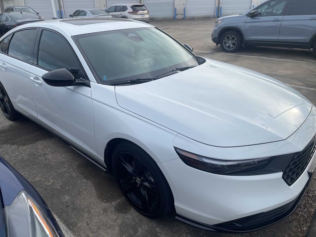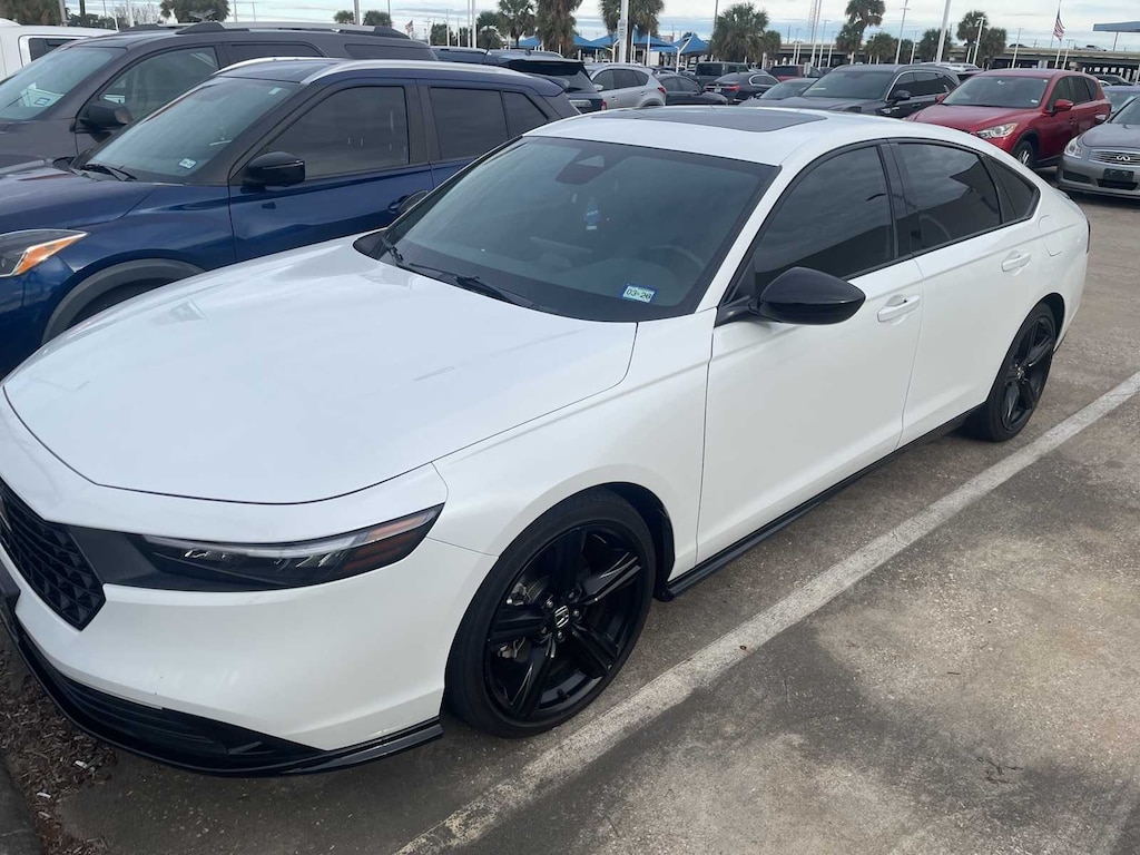 Certified. LOCAL TRADE, BLUETOOTH, CLEAN CARFAX, NON-SMOKER, CERTIFIED, CARFAX ONE OWNER, None Smoker, Lane Monitor!, Service Records Available!, Remainder of Factory Warranty Still Applies!, ** LEATHER SEATS, ** SUNROOF, ** HEATED SEATS, ** REARVIEW CAMERA, ** KEYLESS ENTRY, ** BLUETOOTH, HANDS-FREE, ** PREMIUM WHEELS, ** PREMIUM SOUND SYSTEM, ** LANE DEPARTURE WARNING, ** STEERING WHEEL CONTROLS, ** LOCAL TRADE-IN, ** LOCALLY OWNED AND SERVICED, ** BACK UP CAMERA, Accord Hybrid Sport-L, HondaTrue Certified Certified, 4D Sedan, 2.0L 16V DOHC, eCVT, FWD, White, Leather, 4-Wheel Disc Brakes, 8 Speakers, ABS brakes, Adaptive Cruise Control: Adaptive Cruise Control (ACC) with Low-Speed Follow, Air Conditioning, Alloy wheels, AM/FM radio, Apple CarPlay/Android Auto, Auto High-beam Headlights, Automatic temperature control, Blind Spot Information (BSI) System warning, Brake assist, Bumpers: body-color, Compass, Delay-off headlights, Driver door bin, Driver vanity mirror, Dual front impact airbags, Dual front side impact airbags, Electronic Stability Control, Emergency communication system: HondaLink, Exterior Parking Camera Rear, Four wheel independent suspension, Front anti-roll bar, Front Bucket Seats, Front Center Armrest, Front dual zone A/C, Front reading lights, Fully automatic headlights, Heated Front Bucket Seats, Heated front seats, Illuminated entry, Knee airbag, Lane departure: Lane Keeping Assist System (LKAS) active, Leather Shift Knob, Leather steering wheel, Leather-Trimmed Seat Trim, Low tire pressure warning, Memory seat, Occupant sensing airbag, Outside temperature display, Overhead airbag, Overhead console, Panic alarm, Passenger door bin, Passenger vanity mirror, Power door mirrors, Power driver seat, Power moonroof, Power passenger seat, Power steering, Power windows, Radio data system, Radio: 180-Watt Audio System, Rear anti-roll bar, Rear reading lights, Rear seat center armrest, Rear side impact airbag, Rear window defroster, Remote keyless entry, Security system, Speed control, Speed-sensing steering, Speed-Sensitive Wipers, Split folding rear seat, Spoiler, Steering wheel mounted audio controls, Telescoping steering wheel, Tilt steering wheel, Traction control, Trip computer, Variably intermittent wipers, Wheels: 19 x 8.5J Matte Berlina Black, Accord Hybrid Sport-L, 4D Sedan, 2.0L 16V DOHC, eCVT, FWD, White, Leather.