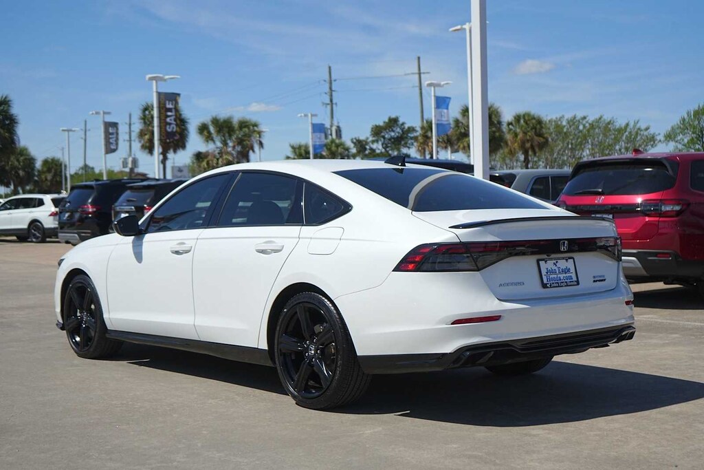 Certified. BLUETOOTH, CLEAN CARFAX, NON-SMOKER, CARFAX ONE OWNER, Lane Monitor!, Blind Spot Technology, ** LEATHER SEATS, ** SUNROOF, ** HEATED SEATS, ** REARVIEW CAMERA, ** APPLE CARPLAY, ** REMOTE ENGINE START, ** ANDROID AUTO, Accord Hybrid Sport-L, HondaTrue Certified Certified, 4D Sedan, 2.0L 16V DOHC, eCVT, FWD, Platinum White Pearl, Black w/Leather-Trimmed Seat Trim, 4-Wheel Disc Brakes, 8 Speakers, ABS brakes, Adaptive Cruise Control: Adaptive Cruise Control (ACC) with Low-Speed Follow, Air Conditioning, Alloy wheels, AM/FM radio, Apple CarPlay/Android Auto, Auto High-beam Headlights, Automatic temperature control, Blind Spot Information (BSI) System warning, Brake assist, Bumpers: body-color, Compass, Delay-off headlights, Driver door bin, Driver vanity mirror, Dual front impact airbags, Dual front side impact airbags, Electronic Stability Control, Emergency communication system: HondaLink, Exterior Parking Camera Rear, Four wheel independent suspension, Front anti-roll bar, Front Bucket Seats, Front Center Armrest, Front dual zone A/C, Front reading lights, Fully automatic headlights, Heated Front Bucket Seats, Heated front seats, Illuminated entry, Knee airbag, Lane departure: Lane Keeping Assist System (LKAS) active, Leather Shift Knob, Leather steering wheel, Leather-Trimmed Seat Trim, Low tire pressure warning, Memory seat, Occupant sensing airbag, Outside temperature display, Overhead airbag, Overhead console, Panic alarm, Passenger door bin, Passenger vanity mirror, Power door mirrors, Power driver seat, Power moonroof, Power passenger seat, Power steering, Power windows, Radio data system, Radio: 180-Watt Audio System, Rear anti-roll bar, Rear reading lights, Rear seat center armrest, Rear side impact airbag, Rear window defroster, Remote keyless entry, Security system, Speed control, Speed-sensing steering, Speed-Sensitive Wipers, Split folding rear seat, Spoiler, Steering wheel mounted audio controls, Telescoping steering wheel, Tilt steering wheel, Traction control, Trip computer, Variably intermittent wipers, Wheels: 19 x 8.5J Matte Berlina Black, Accord Hybrid Sport-L, 4D Sedan, 2.0L 16V DOHC, eCVT, FWD, Platinum White Pearl, Black w/Leather-Trimmed Seat Trim.