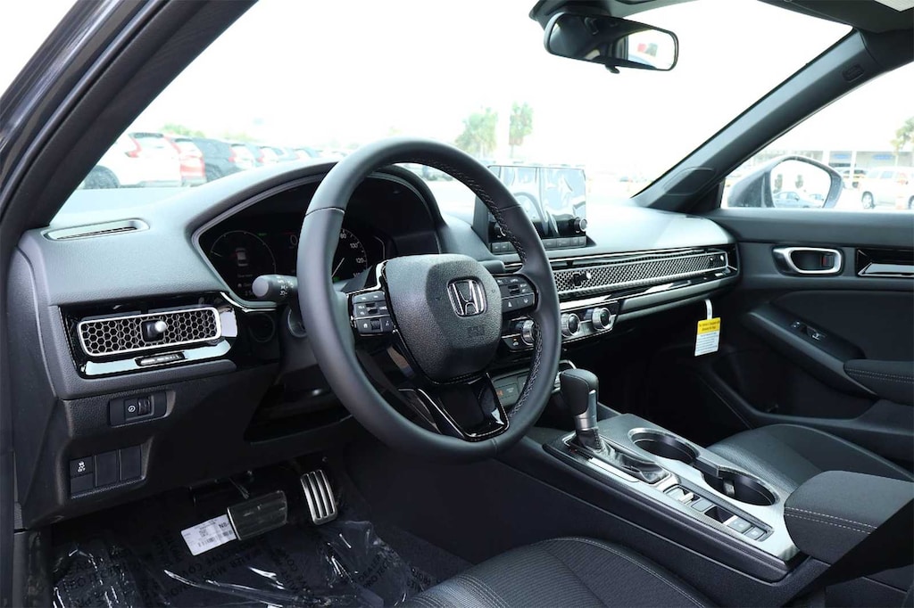 2026 Honda Civic Hybrid Sport 2.0L 16V DOHC, 4-Wheel Disc Brakes, 8 Speakers, ABS brakes, Adaptive Cruise Control: Adaptive Cruise Control (ACC) with Low-Speed Follow, Air Conditioning, Alloy wheels, AM/FM radio, Apple CarPlay/Android Auto, Auto High-beam Headlights, Automatic temperature control, Blind Spot Information (BSI) System warning, Brake assist, Bumpers: body-color, Cloth/Leatherette Seat Trim, Delay-off headlights, Driver door bin, Driver vanity mirror, Dual front impact airbags, Dual front side impact airbags, Electronic Stability Control, Emergency communication system: HondaLink, Exterior Parking Camera Rear, Four wheel independent suspension, Front anti-roll bar, Front Bucket Seats, Front Center Armrest, Front dual zone A/C, Front reading lights, Fully automatic headlights, Heated door mirrors, Heated Front Bucket Seats, Heated front seats, Illuminated entry, Knee airbag, Leather Shift Knob, Leather steering wheel, Low tire pressure warning, Occupant sensing airbag, Outside temperature display, Overhead airbag, Panic alarm, Passenger door bin, Passenger vanity mirror, Power door mirrors, Power moonroof, Power steering, Power windows, Radio data system, Radio: 180-Watt Audio System, Rear anti-roll bar, Rear seat center armrest, Rear side impact airbag, Rear window defroster, Remote keyless entry, Security system, Speed control, Speed-sensing steering, Split folding rear seat, Steering wheel mounted audio controls, Tachometer, Telescoping steering wheel, Tilt steering wheel, Traction control, Trip computer, Variably intermittent wipers, Wheels: 18 Gloss Black Alloy, 2.0L 16V DOHC. 50/47 City/Highway MPG