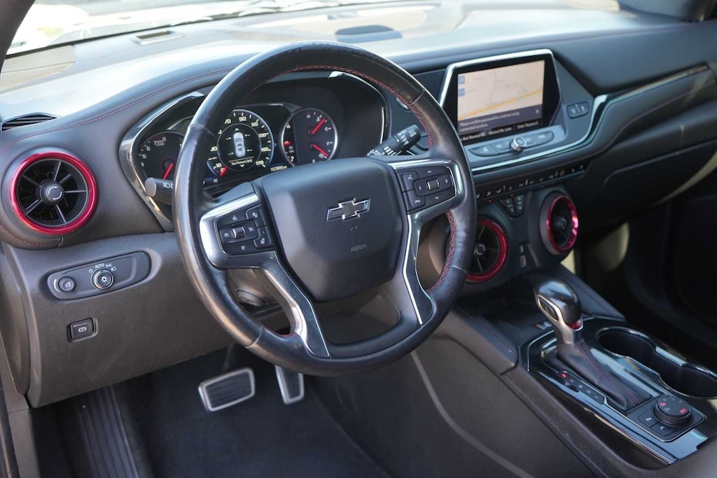 LOCAL TRADE, BLUETOOTH, CLEAN CARFAX, NON-SMOKER, Service Records Available!, ** LEATHER SEATS, ** HEATED SEATS, ** REARVIEW CAMERA, ** NAVIGATION SYSTEM, ** KEYLESS ENTRY, ** BLUETOOTH, HANDS-FREE, ** BLIND SPOT ALERT, ** KEYLESS START, ** PREMIUM WHEELS, ** PREMIUM SOUND SYSTEM, ** LANE DEPARTURE WARNING, ** SATELLITE RADIO, ** STEERING WHEEL CONTROLS, ** ALARM SYSTEM, ** WIFI HOTSPOT, ** AUXILIARY AUDIO INPUT, ** LOCAL TRADE-IN, ** LOCALLY OWNED AND SERVICED, ** ALLOY WHEELS, Blazer RS, 4D Sport Utility, 3.6L V6 SIDI DOHC VVT, 9-Speed Automatic, AWD, Black, Jet Black Leather, 1st & 2nd Row All-Weather Floor Liner (LPO), 3.49 Final Drive Ratio, 4-Wheel Disc Brakes, 6 Speakers, 6-Speaker Audio System Feature, 6-Way Power Front Passenger Seat Adjuster, ABS brakes, Advanced Adaptive Cruise Control, Air Conditioning, Alloy wheels, AM/FM radio: SiriusXM, Apple CarPlay/Android Auto, Auto-dimming door mirrors, Auto-dimming Rear-View mirror, Automatic temperature control, Black Illuminated Front Bowtie Emblem (LPO), Black Lug Nut & Wheel Lock Kit (LPO), Brake assist, Bumpers: body-color, Cargo Flex Divider (LPO), Child-Seat-Sensing Airbag, Compass, Delay-off headlights, Driver door bin, Driver vanity mirror, Dual front impact airbags, Dual front side impact airbags, Electronic Stability Control, Emergency communication system: OnStar and Chevrolet connected services capable, Enhanced Convenience & Driver Confidence II Pkg, Floor Liner Package (LPO), Following Distance Indicator, Forward Automatic Braking, Forward Collision Alert, Four wheel independent suspension, Front anti-roll bar, Front Bucket Seats, Front Center Armrest, Front dual zone A/C, Front Pedestrian Braking, Front reading lights, Fully automatic headlights, Garage door transmitter, HD Surround Vision, Heated door mirrors, Heated Driver & Front Passenger Seats, Heated front seats, Heated Rear Outboard Seating Positions, Heated steering wheel, High-Intensity Discharge Headlights, Illuminated entry, IntelliBeam Headlamps, Knee airbag, Lane Keep Assist w/Lane Departure Warning, Leather Shift Knob, Low tire pressure warning, Memory Settings For Driver Seat & Exterior Mirrors, Navigation System, Occupant sensing airbag, Outside temperature display, Overhead airbag, Overhead console, Panic alarm, Panoramic Tilt-Sliding Power Sunroof, Passenger door bin, Passenger vanity mirror, Pedal Cover Set, Perforated Leather-Appointed Seat Trim, Power door mirrors, Power driver seat, Power Liftgate, Power passenger seat, Power steering, Power Tilt & Telescoping Steering Column, Power windows, Preferred Equipment Group 1RS, Radio data system, Radio: Chevrolet Infotainment 3 Plus System, Radio: Chevrolet Infotainment 3 Premium System, Rear anti-roll bar, Rear Camera Mirror, Rear reading lights, Rear seat center armrest, Rear window defroster, Rear window wiper, Remote keyless entry, Ride & Handling Suspension, Roof rack: rails only, Safety Alert Seat, Security system, Speed control, Speed-sensing steering, Split folding rear seat, Spoiler, Steering wheel mounted audio controls, Sun & Wheels Package, Tachometer, Telescoping steering wheel, Tilt steering wheel, Traction control, Trip computer, Turn signal indicator mirrors, Variably intermittent wipers, Ventilated Driver & Front Passenger Seats, Voltmeter, Wheels: 20 Dark Android Machined-Face Aluminum, Wheels: 21 Gloss Black Aluminum, Wireless Charging, Blazer RS, 4D Sport Utility, 3.6L V6 SIDI DOHC VVT, 9-Speed Automatic, AWD, Black, Jet Black Leather, 1st & 2nd Row All-Weather Floor Liner (LPO), 3.49 Final Drive Ratio, 4-Wheel Disc Brakes, 6 Speakers, 6-Speaker Audio System Feature, 6-Way Power Front Passenger Seat Adjuster, ABS brakes, Advanced Adaptive Cruise Control, Air Conditioning, Alloy wheels, AM/FM radio: SiriusXM, Apple CarPlay/Android Auto, Auto-dimming door mirrors, Auto-dimming Rear-View mirror, Automatic temperature control, Black Illuminated Front Bowtie Emblem (LPO), Black Lug Nut & Wheel Lock Kit (LPO), Brake assist, Bu
