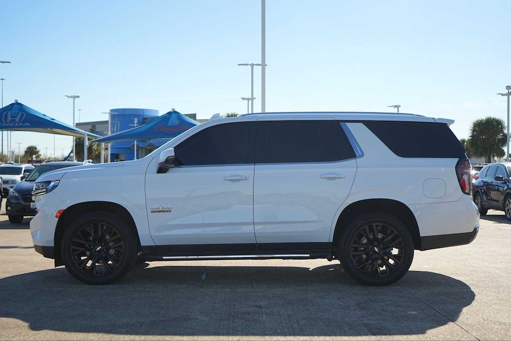 LOCAL TRADE, BLUETOOTH, CLEAN CARFAX, NON-SMOKER, Service Records Available!, ** LEATHER SEATS, ** SUNROOF, ** 3RD-ROW SEATS, ** TRAILER HITCH, ** HEATED SEATS, ** REARVIEW CAMERA, ** NAVIGATION SYSTEM, ** KEYLESS ENTRY, ** APPLE CARPLAY, ** REMOTE ENGINE START, ** BLUETOOTH, HANDS-FREE, ** BLIND SPOT ALERT, ** KEYLESS START, ** PREMIUM WHEELS, ** PREMIUM SOUND SYSTEM, ** LANE DEPARTURE WARNING, ** SATELLITE RADIO, ** STEERING WHEEL CONTROLS, ** ALARM SYSTEM, ** WIFI HOTSPOT, ** AUXILIARY AUDIO INPUT, ** LOCAL TRADE-IN, ** LOCALLY OWNED AND SERVICED, ** ADVANCED SAFETY TECHNOLOGY, ** BACK UP CAMERA, ** POWER TAILGATE, ** ALLOY WHEELS, ** UPGRADE 22 WHEEL PACKAGE, Tahoe LT, 4D Sport Utility, EcoTec3 5.3L V8, 10-Speed Automatic with Overdrive, RWD, Summit White, Black Leather, 10-Way Power Driver & Passenger Seat Adjusters, 1st & 2nd Row Color-Keyed Carpeted Floor Mats, 2nd Row Pwr Release 60/40 Split-Folding Bench Seat, 3.23 Rear Axle Ratio, 3rd Row 60/40 Power-Folding Split-Bench Seat, 3rd row seats: split-bench, 4-Wheel Disc Brakes, 9 Speakers, ABS brakes, Air Conditioning, Alloy wheels, AM/FM radio: SiriusXM with 360L, Apple CarPlay/Android Auto, Auto High-beam Headlights, Auto-Dimming Inside Rear-View Mirror, Auto-dimming Rear-View mirror, Automatic Stop/Start, Automatic temperature control, Bose 9-Speaker Stereo Audio System Feature, Brake assist, Bright Front & Rear Door Sill Plates, Bumpers: body-color, Color-Keyed Carpeting Floor Covering, Compass, Delay-off headlights, Driver & Front Outboard Passenger Airbags, Driver Alert Package, Driver door bin, Driver vanity mirror, Dual front impact airbags, Dual front side impact airbags, Dual-Pane Power Panoramic Sunroof, Electronic Stability Control, Emergency communication system: OnStar and Chevrolet connected services capable, Enhanced Driver Information Center, Floor Console w/Storage Area, Four wheel independent suspension, Front anti-roll bar, Front Bucket Seats, Front Center Armrest, Front dual zone A/C, Front High-Back Reclining Bucket Seats, Front reading lights, Fully automatic headlights, Garage door transmitter, Hands-Free Rear Power Programmable Liftgate, HD Surround Vision, Heated 2nd Row Outboard Seats, Heated door mirrors, Heated Driver & Front Passenger Seats, Heated front seats, Heated Steering Wheel, Illuminated entry, Infotainment Display, Lane Change Alert w/Side Blind Zone Alert, Leather steering wheel, Leather-Appointed Seat Trim, Leather-Wrapped Steering Wheel, LED Daytime Running Lamps, License Plate Front Mounting Package, Low tire pressure warning, Luxury Package, Memory seat, Memory Settings, Memory Settings for Driver, Navigation System, Not Equipped w/Steering Column Lock, Occupant sensing airbag, Outside Heated Power-Adjustable Mirrors, Outside temperature display, Overhead airbag, Overhead console, Panic alarm, Passenger door bin, Passenger vanity mirror, Power door mirrors, Power driver seat, Power Liftgate, Power passenger seat, Power steering, Power Tilt & Telescopic Steering Column, Power windows, Preferred Equipment Group 1LT, Premium audio system: Chevrolet Infotainment System 3, Premium Smooth Ride Suspension, Radio: Chevrolet Infotainment 3 Premium System, Rain sensing wipers, Rear air conditioning, Rear anti-roll bar, Rear Cross Traffic Alert, Rear Pedestrian Alert, Rear reading lights, Rear seat center armrest, Rear window defroster, Rear window wiper, Remote keyless entry, Remote Start, Roof rack: rails only, Security system, SiriusXM Radio w/360L, Speed control, Speed-sensing steering, Split folding rear seat, Spoiler, Start/Stop System Disable Button, Steering wheel mounted audio controls, Tachometer, Telescoping steering wheel, Texas Edition, Texas Edition Badging, Tilt steering wheel, Traction control, Trip computer, Universal Home Remote, Variably intermittent wipers, Vertical Cargo Net (LPO), Voltmeter, Wheels: 18 x 8.5 Bright Silver Painted Aluminum, Wheels: 22 Multi-Spoke Gloss Black (LPO), Wheels: 22 x 9 Steel Interim (