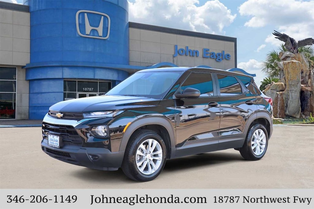 LOCAL TRADE, BLUETOOTH, CLEAN CARFAX, CARFAX ONE OWNER, Service Records Available!, ** STEERING WHEEL CONTROLS, ** ALARM SYSTEM, ** WIFI HOTSPOT, ** AUXILIARY AUDIO INPUT, TrailBlazer LS, 4D Sport Utility, 1.2L Ecotec Turbo DOHC DI w/VVT, CVT, FWD, Mosaic Black Metallic, Black Cloth, 2-Way Adjustable Front Head Restraints, 4-Way Manual Front Passenger Seat Adjuster, 4-Wheel Disc Brakes, 5.45 Axle Ratio, 6 Speakers, 6-Speaker Audio System Feature, 6-Way Manual Driver Seat Adjuster, 7 Diagonal Color Touchscreen, ABS brakes, Air Conditioning, Alloy wheels, AM/FM radio: SiriusXM, Auto High-beam Headlights, Brake assist, Bumpers: body-color, Cloth Seat Trim, Compass, Delay-off headlights, Driver door bin, Driver vanity mirror, Dual front impact airbags, Dual front side impact airbags, Electronic Cruise Control w/Set & Resume Speed, Electronic Stability Control, Emergency communication system: OnStar and Chevrolet connected services capable, Exterior Parking Camera Rear, Flat-Folding Front Passenger Seatback, Front anti-roll bar, Front Bucket Seats, Front Center Armrest, Front License Plate Bracket, Front reading lights, Front wheel independent suspension, Fully automatic headlights, Illuminated entry, Knee airbag, Low tire pressure warning, Occupant sensing airbag, Overhead airbag, Overhead console, Panic alarm, Passenger door bin, Passenger vanity mirror, Power door mirrors, Power steering, Power windows, Preferred Equipment Group 1LS, Radio data system, Radio: Chevrolet Infotainment 3 System, Rear side impact airbag, Rear window defroster, Rear window wiper, Remote keyless entry, Ride & Handling Suspension, Security system, SiriusXM Radio, Split folding rear seat, Spoiler, Steering wheel mounted audio controls, Tachometer, Telescoping steering wheel, Tilt steering wheel, Traction control, Trip computer, Variably intermittent wipers, Wheels: 17 Silver-Painted Aluminum, Wireless Apple CarPlay/Android Auto, TrailBlazer LS, 4D Sport Utility, 1.2L Ecotec Turbo DOHC DI w/VVT, CVT, FWD, Mosaic Black Metallic, Black Cloth, 2-Way Adjustable Front Head Restraints, 4-Way Manual Front Passenger Seat Adjuster, 4-Wheel Disc Brakes, 5.45 Axle Ratio, 6 Speakers, 6-Speaker Audio System Feature, 6-Way Manual Driver Seat Adjuster, 7 Diagonal Color Touchscreen, ABS brakes, Air Conditioning, Alloy wheels, AM/FM radio: SiriusXM, Auto High-beam Headlights, Brake assist, Bumpers: body-color, Cloth Seat Trim, Compass, Delay-off headlights, Driver door bin, Driver vanity mirror, Dual front impact airbags, Dual front side impact airbags, Electronic Cruise Control w/Set & Resume Speed, Electronic Stability Control, Emergency communication system: OnStar and Chevrolet connected services capable, Exterior Parking Camera Rear, Flat-Folding Front Passenger Seatback, Front anti-roll bar, Front Bucket Seats, Front Center Armrest, Front License Plate Bracket, Front reading lights, Front wheel independent suspension, Fully automatic headlights, Illuminated entry, Knee airbag, Low tire pressure warning, Occupant sensing airbag, Overhead airbag, Overhead console, Panic alarm, Passenger door bin, Passenger vanity mirror, Power door mirrors, Power steering, Power windows, Preferred Equipment Group 1LS, Radio data system, Radio: Chevrolet Infotainment 3 System, Rear side impact airbag, Rear window defroster, Rear window wiper, Remote keyless entry, Ride & Handling Suspension, Security system, SiriusXM Radio, Split folding rear seat, Spoiler, Steering wheel mounted audio controls, Tachometer, Telescoping steering wheel, Tilt steering wheel, Traction control, Trip computer, Variably intermittent wipers, Wheels: 17 Silver-Painted Aluminum, Wireless Apple CarPlay/Android Auto.