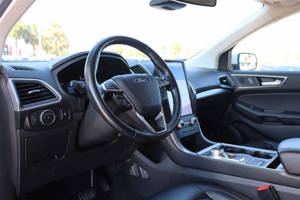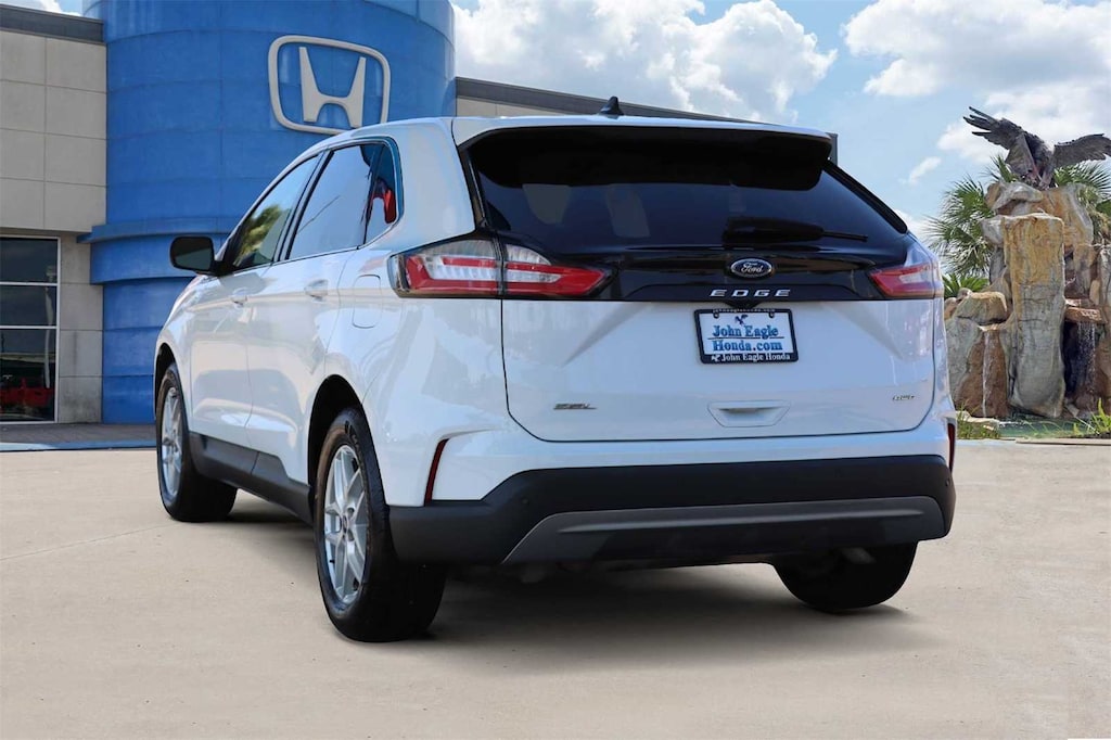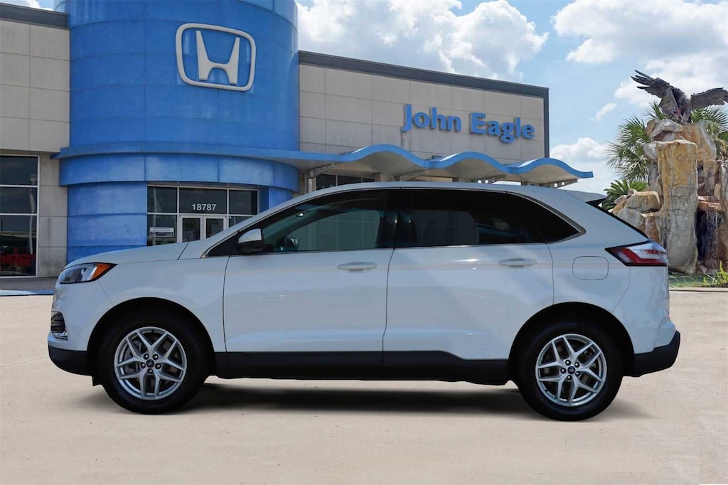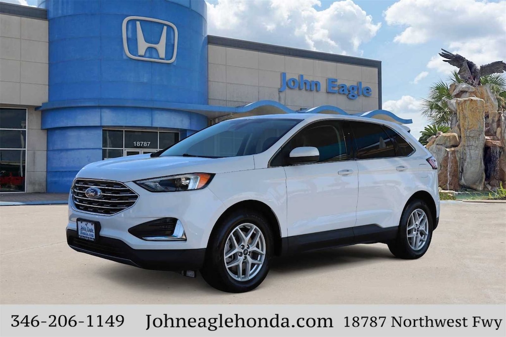 BLUETOOTH, NON-SMOKER, CARFAX ONE OWNER, ** LEATHER SEATS, ** REARVIEW CAMERA, ** NAVIGATION SYSTEM, ** KEYLESS ENTRY, ** APPLE CARPLAY, ** BLUETOOTH, HANDS-FREE, ** KEYLESS START, ** PREMIUM WHEELS, ** PREMIUM SOUND SYSTEM, ** ANDROID AUTO, Edge SEL, 4D Sport Utility, EcoBoost 2.0L I4 GTDi DOHC Turbocharged VCT, 8-Speed Automatic, AWD, Oxford White, Ebony Premium Synthetic, 3.80 Axle Ratio, 4-Wheel Disc Brakes, 6 Speakers, ABS brakes, ActiveX Seating Material Heated Bucket Seats, Air Conditioning, Alloy wheels, AM/FM radio: SiriusXM with 360L, Auto High-beam Headlights, Auto-dimming Rear-View mirror, Automatic temperature control, Brake assist, Bumpers: body-color, Compass, Delay-off headlights, Driver door bin, Driver vanity mirror, Dual front impact airbags, Dual front side impact airbags, Electronic Stability Control, Emergency communication system: SYNC 4 911 Assist, Equipment Group 201A, FordPass Connect, Four wheel independent suspension, Front anti-roll bar, Front Bucket Seats, Front Center Armrest w/Storage, Front dual zone A/C, Front reading lights, Fully automatic headlights, Heated door mirrors, Heated front seats, Illuminated entry, Knee airbag, Low tire pressure warning, Occupant sensing airbag, Outside temperature display, Overhead airbag, Overhead console, Panic alarm, Passenger door bin, Passenger vanity mirror, Power door mirrors, Power driver seat, Power passenger seat, Power steering, Power windows, Radio: AM/FM Stereo/MP3 Capable, Rear anti-roll bar, Rear Parking Sensors, Rear reading lights, Rear seat center armrest, Rear window defroster, Rear window wiper, Remote keyless entry, SiriusXM w/360L, Speed control, Speed-Sensitive Wipers, Split folding rear seat, Spoiler, Steering wheel mounted audio controls, SYNC 4A w/Enhanced Voice Recognition, Tachometer, Telescoping steering wheel, Tilt steering wheel, Traction control, Trip computer, Variably intermittent wipers, Wheels: 18 Sparkle Silver-Painted Aluminum, Edge SEL, 4D Sport Utility, EcoBoost 2.0L I4 GTDi DOHC Turbocharged VCT, 8-Speed Automatic, AWD, Oxford White, Ebony Premium Synthetic, 3.80 Axle Ratio, 4-Wheel Disc Brakes, 6 Speakers, ABS brakes, ActiveX Seating Material Heated Bucket Seats, Air Conditioning, Alloy wheels, AM/FM radio: SiriusXM with 360L, Auto High-beam Headlights, Auto-dimming Rear-View mirror, Automatic temperature control, Brake assist, Bumpers: body-color, Compass, Delay-off headlights, Driver door bin, Driver vanity mirror, Dual front impact airbags, Dual front side impact airbags, Electronic Stability Control, Emergency communication system: SYNC 4 911 Assist, Equipment Group 201A, FordPass Connect, Four wheel independent suspension, Front anti-roll bar, Front Bucket Seats, Front Center Armrest w/Storage, Front dual zone A/C, Front reading lights, Fully automatic headlights, Heated door mirrors, Heated front seats, Illuminated entry, Knee airbag, Low tire pressure warning, Occupant sensing airbag, Outside temperature display, Overhead airbag, Overhead console, Panic alarm, Passenger door bin, Passenger vanity mirror, Power door mirrors, Power driver seat, Power passenger seat, Power steering, Power windows, Radio: AM/FM Stereo/MP3 Capable, Rear anti-roll bar, Rear Parking Sensors, Rear reading lights, Rear seat center armrest, Rear window defroster, Rear window wiper, Remote keyless entry, SiriusXM w/360L, Speed control, Speed-Sensitive Wipers, Split folding rear seat, Spoiler, Steering wheel mounted audio controls, SYNC 4A w/Enhanced Voice Recognition, Tachometer, Telescoping steering wheel, Tilt steering wheel, Traction control, Trip computer, Variably intermittent wipers, Wheels: 18 Sparkle Silver-Painted Aluminum.