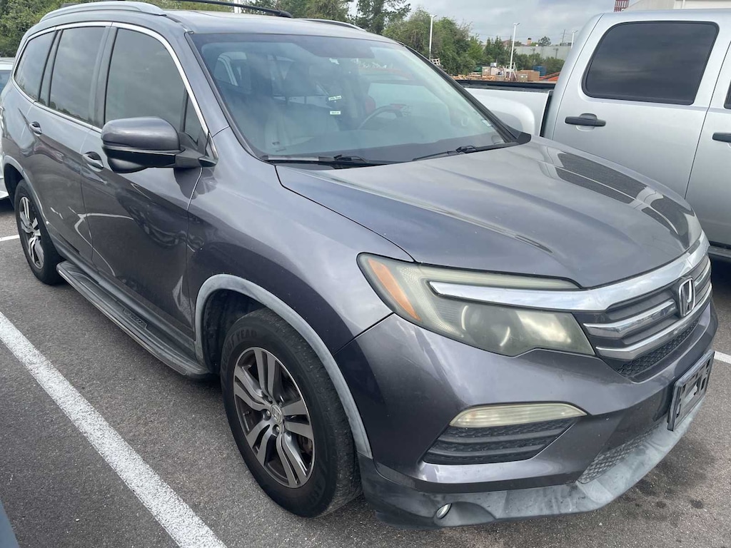 BLUETOOTH, ** LEATHER SEATS, ** SUNROOF, ** 3RD-ROW SEATS, ** HEATED SEATS, ** REARVIEW CAMERA, ** KEYLESS ENTRY, ** REMOTE ENGINE START, ** LANE DEPARTURE WARNING, Pilot EX-L w/Navigation, 4D Sport Utility, 3.5L V6 24V SOHC i-VTEC, 6-Speed Automatic, FWD, Gray w/Leather-Trimmed Seats, 18 Alloy Wheels, 3rd row seats: split-bench, 4-Wheel Disc Brakes, 4.25 Axle Ratio, 7 Speakers, ABS brakes, Air Conditioning, Alloy wheels, AM/FM radio: SiriusXM, Auto-dimming Rear-View mirror, Automatic temperature control, Brake assist, Bumpers: body-color, Compass, Delay-off headlights, Driver door bin, Driver vanity mirror, Dual front impact airbags, Dual front side impact airbags, Electronic Stability Control, Emergency communication system: HondaLink Assist, Exterior Parking Camera Rear, Four wheel independent suspension, Front anti-roll bar, Front Bucket Seats, Front Center Armrest, Front dual zone A/C, Front fog lights, Front reading lights, Fully automatic headlights, Garage door transmitter: HomeLink, Heated Front Bucket Seats, Heated front seats, Illuminated entry, Leather Shift Knob, Leather-Trimmed Seats, Low tire pressure warning, Navigation System, Occupant sensing airbag, Outside temperature display, Overhead airbag, Overhead console, Panic alarm, Passenger door bin, Passenger vanity mirror, Power door mirrors, Power driver seat, Power Liftgate, Power moonroof, Power passenger seat, Power steering, Power windows, Radio data system, Radio: AM/FM Audio System, Rear air conditioning, Rear anti-roll bar, Rear reading lights, Rear seat center armrest, Rear window defroster, Rear window wiper, Remote keyless entry, Security system, SiriusXM Radio, Speed control, Speed-sensing steering, Speed-Sensitive Wipers, Split folding rear seat, Spoiler, Steering wheel mounted audio controls, Tachometer, Telescoping steering wheel, Tilt steering wheel, Traction control, Trip computer, Variably intermittent wipers, Pilot EX-L w/Navigation, 4D Sport Utility, 3.5L V6 24V SOHC i-VTEC, 6-Speed Automatic, FWD, Gray w/Leather-Trimmed Seats.