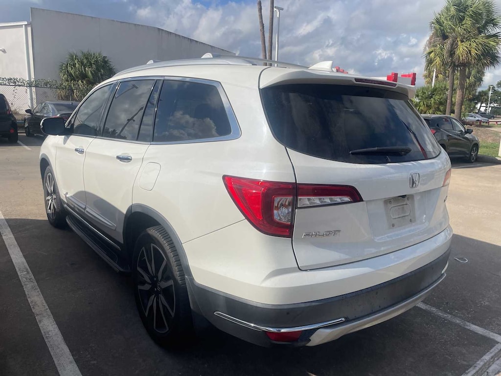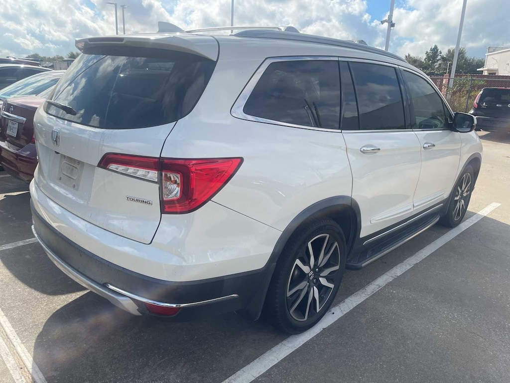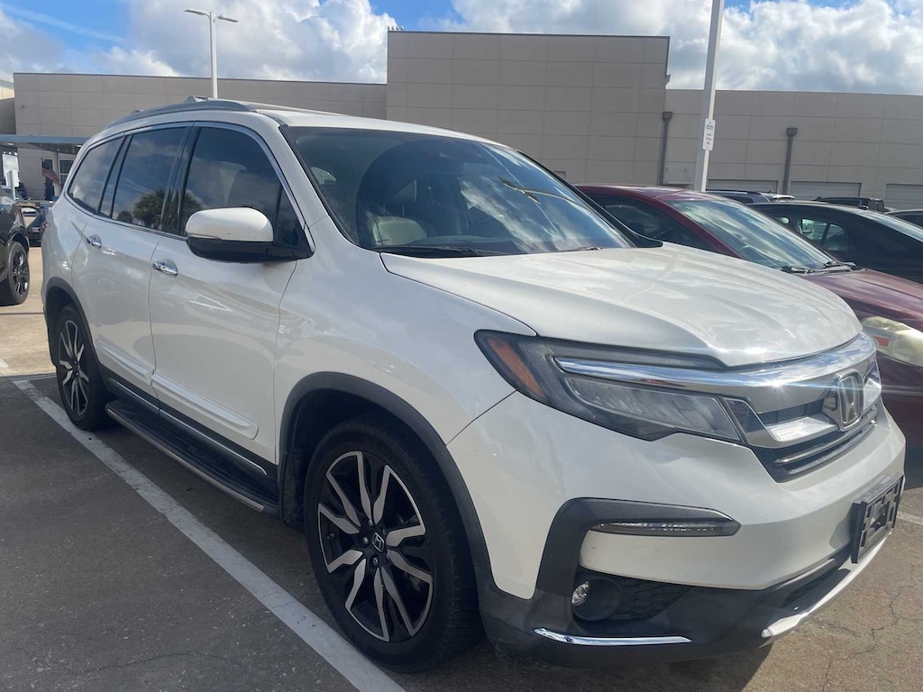 LOCAL TRADE, CLEAN CARFAX, CARFAX ONE OWNER, ** LEATHER SEATS, ** SUNROOF, ** 3RD-ROW SEATS, ** HEATED SEATS, ** REARVIEW CAMERA, ** APPLE CARPLAY, ** REMOTE ENGINE START, ** BLUETOOTH, HANDS-FREE, ** BLIND SPOT ALERT, ** ANDROID AUTO, Pilot Touring 8 Passenger, 4D Sport Utility, 3.5L V6 24V SOHC i-VTEC, 9-Speed Automatic, FWD, White Diamond Pearl, Beige w/Leather-Trimmed Seats, 10 Speakers, 3rd row seats: split-bench, 4-Wheel Disc Brakes, 4.334 Axle Ratio, A/V remote: CabinControl, ABS brakes, Air Conditioning, Alloy wheels, AM/FM radio: SiriusXM, Apple CarPlay/Android Auto, Auto High-beam Headlights, Auto-dimming Rear-View mirror, Automatic temperature control, Blind Spot Information (BSI) System warning, Brake assist, Bumpers: body-color, Compass, Delay-off headlights, Driver door bin, Driver vanity mirror, Dual front impact airbags, Dual front side impact airbags, Electronic Stability Control, Emergency communication system: HondaLink, Exterior Parking Camera Rear, Forward collision: Collision Mitigation Braking System (CMBS) + FCW mitigation, Four wheel independent suspension, Front anti-roll bar, Front Bucket Seats, Front Center Armrest, Front dual zone A/C, Front fog lights, Front reading lights, Fully automatic headlights, Garage door transmitter: HomeLink, Headphones, Heated door mirrors, Heated Front Bucket Seats, Heated front seats, Heated rear seats, Illuminated entry, Lane departure: Lane Keeping Assist System (LKAS) active, Leather-Trimmed Seats, Low tire pressure warning, Memory seat, Navigation system: Honda Satellite-Linked Navigation System, Occupant sensing airbag, Outside temperature display, Overhead airbag, Overhead console, Panic alarm, Passenger door bin, Passenger vanity mirror, Power door mirrors, Power driver seat, Power Liftgate, Power moonroof, Power passenger seat, Power steering, Power windows, Radio data system, Radio: AM/FM Premium Audio System, Rear air conditioning, Rear anti-roll bar, Rear reading lights, Rear seat center armrest, Rear window defroster, Rear window wiper, Remote keyless entry, Roof rack: rails only, Security system, Speed control, Speed-sensing steering, Speed-Sensitive Wipers, Split folding rear seat, Spoiler, Steering wheel mounted audio controls, Tachometer, Telescoping steering wheel, Tilt steering wheel, Traction control, Trip computer, Turn signal indicator mirrors, Variably intermittent wipers, Wheels: 20 Machine-Finished Alloy, Pilot Touring 8 Passenger, 4D Sport Utility, 3.5L V6 24V SOHC i-VTEC, 9-Speed Automatic, FWD, White Diamond Pearl, Beige w/Leather-Trimmed Seats.