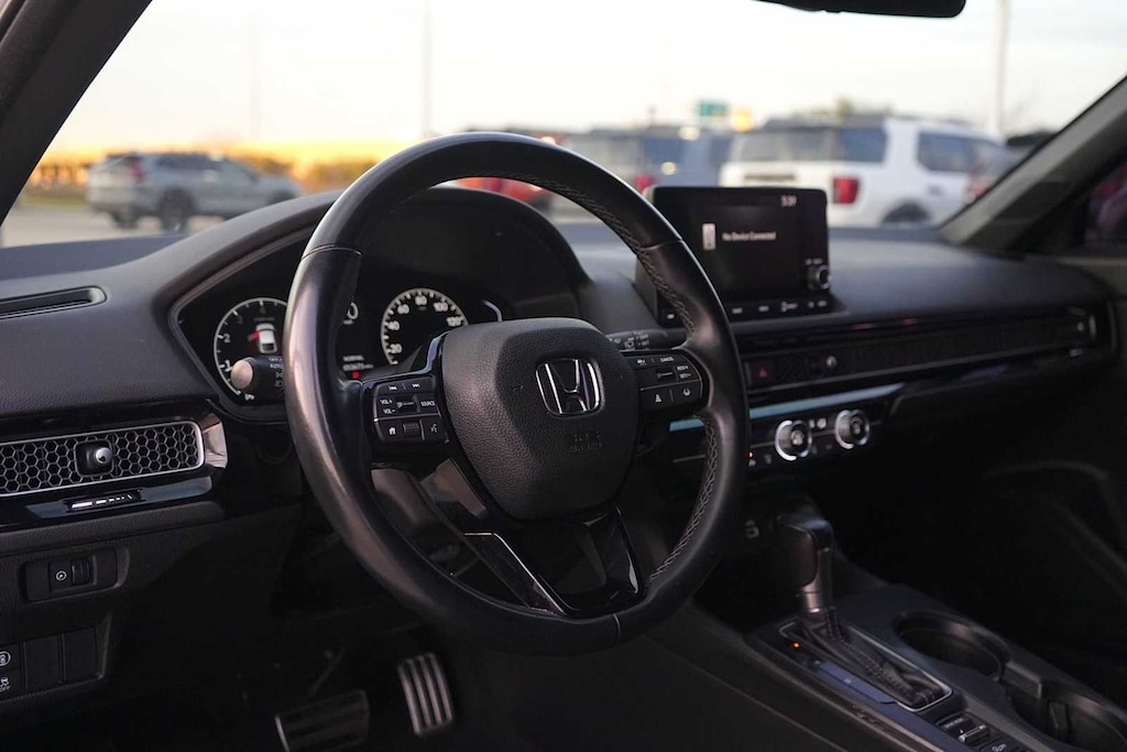 LOCAL TRADE, BLUETOOTH, CLEAN CARFAX, NON-SMOKER, CARFAX ONE OWNER, ** HEATED SEATS, ** REARVIEW CAMERA, ** NAVIGATION SYSTEM, ** KEYLESS ENTRY, ** APPLE CARPLAY, ** REMOTE ENGINE START, ** BLUETOOTH, HANDS-FREE, ** BLIND SPOT ALERT, ** KEYLESS START, ** PREMIUM WHEELS, ** PREMIUM SOUND SYSTEM, ** ANDROID AUTO, ** LANE DEPARTURE WARNING, ** SATELLITE RADIO, ** STEERING WHEEL CONTROLS, ** ALARM SYSTEM, ** WIFI HOTSPOT, ** AUXILIARY AUDIO INPUT, ** LOCAL TRADE-IN, ** LOCALLY OWNED AND SERVICED, ** BACK UP CAMERA, Civic Sport, 4D Hatchback, 2.0L I4 DOHC 16V, CVT, FWD, White, Black w/Cloth Seat Trim, 18 Alloy Wheels, 4-Wheel Disc Brakes, 8 Speakers, ABS brakes, Adaptive Cruise Control: Adaptive Cruise Control (ACC) with Low-Speed Follow, Air Conditioning, Alloy wheels, AM/FM radio, Apple CarPlay/Android Auto, Auto High-beam Headlights, Automatic temperature control, Brake assist, Bumpers: body-color, Delay-off headlights, Driver door bin, Driver vanity mirror, Dual front impact airbags, Dual front side impact airbags, Electronic Stability Control, Emergency communication system: HondaLink, Exterior Parking Camera Rear, Fabric Seating Surfaces, Forward collision: Collision Mitigation Braking System (CMBS) + FCW mitigation, Four wheel independent suspension, Front anti-roll bar, Front Bucket Seats, Front Center Armrest, Front reading lights, Fully automatic headlights, Illuminated entry, Knee airbag, Lane departure: Lane Keeping Assist System (LKAS) active, Leather Shift Knob, Leather steering wheel, Low tire pressure warning, Occupant sensing airbag, Outside temperature display, Overhead airbag, Panic alarm, Passenger door bin, Passenger vanity mirror, Power door mirrors, Power steering, Power windows, Radio data system, Radio: 180-Watt Audio System, Rear anti-roll bar, Rear side impact airbag, Rear window defroster, Rear window wiper, Remote keyless entry, Security system, Speed control, Speed-sensing steering, Split folding rear seat, Steering wheel mounted audio controls, Tachometer, Telescoping steering wheel, Tilt steering wheel, Traction control, Trip computer, Voltmeter, Civic Sport, 4D Hatchback, 2.0L I4 DOHC 16V, CVT, FWD, White, Black w/Cloth Seat Trim.