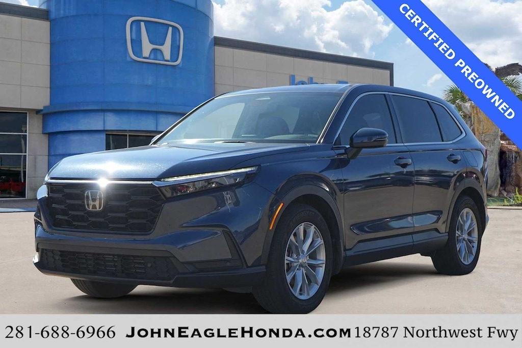 Certified. LOCAL TRADE, BLUETOOTH, CARFAX ONE OWNER, ** LEATHER SEATS, ** HEATED SEATS, ** REARVIEW CAMERA, ** KEYLESS ENTRY, ** APPLE CARPLAY, ** ADAPTIVE CRUISE CONTROL, ** REMOTE ENGINE START, ** BLUETOOTH, HANDS-FREE, ** BLIND SPOT ALERT, ** ANDROID AUTO, ** LANE DEPARTURE WARNING, CR-V EX-L, HondaTrue Certified Certified, 4D Sport Utility, 1.5L I4 DOHC 16V, CVT, FWD, Canyon River Blue Metallic, Black w/Cloth Seat Trim, 4-Wheel Disc Brakes, 5.64 Axle Ratio, 8 Speakers, ABS brakes, Adaptive Cruise Control: Adaptive Cruise Control (ACC) with Low-Speed Follow, Air Conditioning, Alloy wheels, AM/FM radio: SiriusXM, Auto High-beam Headlights, Auto-dimming Rear-View mirror, Automatic temperature control, Brake assist, Bumpers: body-color, Compass, Delay-off headlights, Driver door bin, Driver vanity mirror, Dual front impact airbags, Dual front side impact airbags, Electronic Stability Control, Exterior Parking Camera Rear, Four wheel independent suspension, Front anti-roll bar, Front Bucket Seats, Front Center Armrest, Front dual zone A/C, Front reading lights, Fully automatic headlights, Heated door mirrors, Heated Front Bucket Seats, Heated front seats, Illuminated entry, Knee airbag, Leather Seat Trim, Leather Shift Knob, Leather steering wheel, Low tire pressure warning, Memory seat, Occupant sensing airbag, Outside temperature display, Overhead airbag, Overhead console, Panic alarm, Passenger door bin, Passenger vanity mirror, Power door mirrors, Power driver seat, Power Liftgate, Power moonroof, Power passenger seat, Power steering, Power windows, Radio data system, Radio: 320-Watt AM/FM/HD/SiriusXM Audio System, Rear anti-roll bar, Rear reading lights, Rear seat center armrest, Rear side impact airbag, Rear window defroster, Rear window wiper, Remote keyless entry, Security system, Speed control, Speed-sensing steering, Speed-Sensitive Wipers, Split folding rear seat, Spoiler, Steering wheel mounted audio controls, Tachometer, Telescoping steering wheel, Tilt steering wheel, Traction control, Trip computer, Turn signal indicator mirrors, Variably intermittent wipers, Wheels: 18 Sparkle Silver Metallic, Wireless Apple CarPlay/Wireless Android Auto, CR-V EX-L, 4D Sport Utility, 1.5L I4 DOHC 16V, CVT, FWD, Canyon River Blue Metallic, Black w/Cloth Seat Trim.