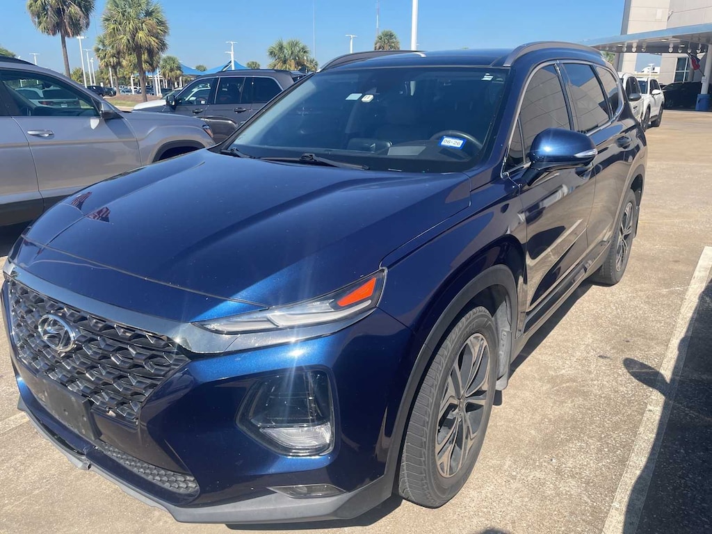 LOCAL TRADE, BLUETOOTH, NON-SMOKER, CARFAX ONE OWNER, Santa Fe Limited, 4D Sport Utility, 8-Speed Automatic with SHIFTRONIC, FWD, Stormy Sea, Gray Leather, 12 Speakers, 4-Wheel Disc Brakes, ABS brakes, Air Conditioning, AM/FM radio: SiriusXM, Automatic temperature control, Dual front impact airbags, Dual front side impact airbags, Four wheel independent suspension, Front dual zone A/C, Heads-Up Display, Memory seat, Navigation System, Option Group 01, Power driver seat, Power steering, Power windows, Radio: Infinity Premium AM/FM/MP3 Display Audio, Rear window defroster, Remote keyless entry, Speed-sensing steering, Steering wheel mounted audio controls, Traction control, Alloy wheels, Apple CarPlay & Android Auto, Auto High-beam Headlights, Auto-dimming Rear-View mirror, Axle Ratio 3.320, Brake assist, Bumper Applique, Bumpers: body-color, Cargo Cover, Cargo Tray, Carpeted Floor Mats, Compass, Delay-off headlights, Driver door bin, Driver vanity mirror, Electronic Stability Control, Emergency communication system, First Aid Kit, Front anti-roll bar, Front Bucket Seats, Front Center Armrest, Front fog lights, Front reading lights, Fully automatic headlights, Garage door transmitter: HomeLink, Heated & Ventilated Front Bucket Seats, Heated door mirrors, Heated front seats, Heated rear seats, Heated steering wheel, Illuminated entry, Leather Seating Surface, Leather Shift Knob, Leather steering wheel, Low tire pressure warning, Mudguards, Occupant sensing airbag, Outside temperature display, Overhead airbag, Overhead console, Panic alarm, Passenger door bin, Passenger vanity mirror, Power door mirrors, Power Liftgate, Power moonroof, Power passenger seat, Rain sensing wipers, Rear anti-roll bar, Rear Parking Sensors, Rear seat center armrest, Rear window wiper, Security system, Speed control, Split folding rear seat, Spoiler, Tachometer, Telescoping steering wheel, Tilt steering wheel, Trip computer, Turn signal indicator mirrors, Variably intermittent wipers, Ventilated front seats, Wheels: 19 x 7.5J Alloy, Santa Fe Limited, 4D Sport Utility, 8-Speed Automatic with SHIFTRONIC, FWD, Stormy Sea, Gray Leather, 12 Speakers, 4-Wheel Disc Brakes, ABS brakes, Air Conditioning, AM/FM radio: SiriusXM, Automatic temperature control, Dual front impact airbags, Dual front side impact airbags, Four wheel independent suspension, Front dual zone A/C, Heads-Up Display, Memory seat, Navigation System, Option Group 01, Power driver seat, Power steering, Power windows, Radio: Infinity Premium AM/FM/MP3 Display Audio, Rear window defroster, Remote keyless entry, Speed-sensing steering, Steering wheel mounted audio controls, Traction control.