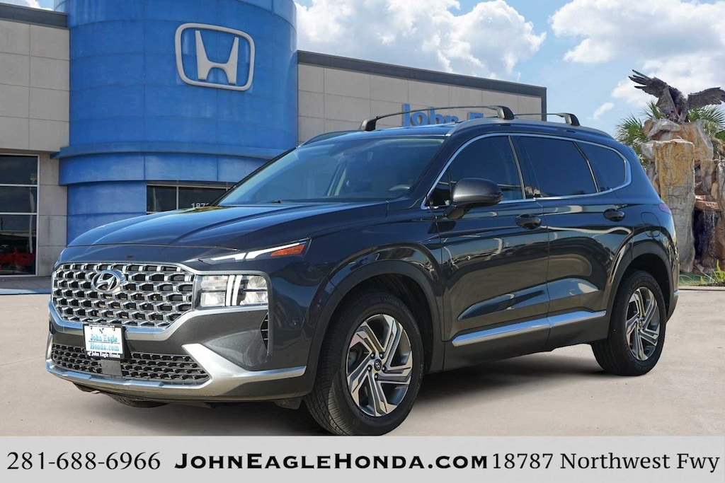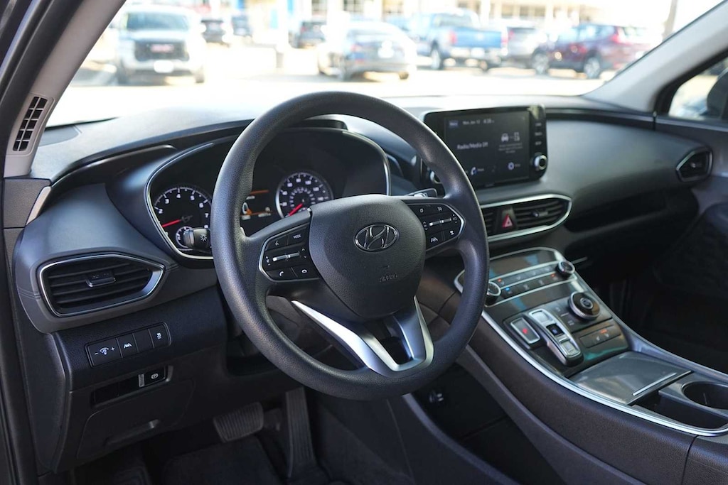 LOCAL TRADE, BLUETOOTH, CLEAN CARFAX, NON-SMOKER, ** REARVIEW CAMERA, ** REMOTE ENGINE START, ** BLUETOOTH, HANDS-FREE, ** BLIND SPOT ALERT, ** KEYLESS START, ** PREMIUM WHEELS, ** PREMIUM SOUND SYSTEM, ** LANE DEPARTURE WARNING, ** SATELLITE RADIO, ** STEERING WHEEL CONTROLS, ** ALARM SYSTEM, ** WIFI HOTSPOT, ** AUXILIARY AUDIO INPUT, ** ALLOY WHEELS, Santa Fe SEL, 4D Sport Utility, 2.5L I4, 8-Speed Automatic with SHIFTRONIC, FWD, Portofino Gray, Gray Cloth, 18 x 7.5J Alloy Wheels, 4-Wheel Disc Brakes, 6 Speakers, ABS brakes, Air Conditioning, Alloy wheels, AM/FM radio: SiriusXM, Apple CarPlay & Android Auto, Auto High-beam Headlights, Axle Ratio: 3.798, Brake assist, Bumper Applique, Bumpers: body-color, Cargo Cover/Screen, Carpeted Floor Mats, Delay-off headlights, Driver door bin, Driver vanity mirror, Dual front impact airbags, Dual front side impact airbags, Electronic Stability Control, Emergency communication system, Exterior Parking Camera Rear, First Aid Kit, Four wheel independent suspension, Front anti-roll bar, Front Bucket Seats, Front Center Armrest, Front reading lights, Fully automatic headlights, Heated door mirrors, Heated Front Bucket Seats, Heated front seats, Illuminated entry, Low tire pressure warning, Occupant sensing airbag, Option Group 01, Outside temperature display, Overhead airbag, Overhead console, Panic alarm, Passenger door bin, Passenger vanity mirror, Power door mirrors, Power driver seat, Power steering, Power windows, Radio: AM/FM Display Audio, Rear anti-roll bar, Rear seat center armrest, Rear window defroster, Rear window wiper, Remote keyless entry, Roof Rack Cross Bars, Security system, Speed control, Speed-sensing steering, Split folding rear seat, Spoiler, Steering wheel mounted audio controls, Tachometer, Telescoping steering wheel, Tilt steering wheel, Traction control, Trip computer, Variably intermittent wipers, YES Essentials Stain-Resistant Cloth Seat Trim, Santa Fe SEL, 4D Sport Utility, 2.5L I4, 8-Speed Automatic with SHIFTRONIC, FWD, Portofino Gray, Gray Cloth.