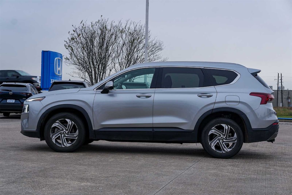 ** APPLE CARPLAY, ** ANDROID AUTO, Santa Fe SEL, 4D Sport Utility, 2.5L I4, 8-Speed Automatic with SHIFTRONIC, FWD, Shimmering Silver Pearl, Black w/Stain-Resistant Cloth Seat Trim, 18 x 7.5J Alloy Wheels, 4-Wheel Disc Brakes, 6 Speakers, ABS brakes, Air Conditioning, Alloy wheels, AM/FM radio: SiriusXM, Apple CarPlay & Android Auto, Auto High-beam Headlights, Automatic temperature control, Axle Ratio: 3.798, Brake assist, Bumpers: body-color, Carpeted Floor Mats, Delay-off headlights, Driver door bin, Driver vanity mirror, Dual front impact airbags, Dual front side impact airbags, Electronic Stability Control, Emergency communication system, Exterior Parking Camera Rear, Four wheel independent suspension, Front anti-roll bar, Front Bucket Seats, Front Center Armrest, Front dual zone A/C, Front reading lights, Fully automatic headlights, Heated door mirrors, Heated Front Bucket Seats, Heated front seats, Illuminated entry, Leather steering wheel, Low tire pressure warning, Navigation System, Occupant sensing airbag, Option Group 01, Outside temperature display, Overhead airbag, Overhead console, Panic alarm, Passenger door bin, Passenger vanity mirror, Power door mirrors, Power driver seat, Power Liftgate, Power steering, Power windows, Radio: AM/FM Display Audio, Rear anti-roll bar, Rear seat center armrest, Rear window defroster, Rear window wiper, Remote keyless entry, Security system, Speed control, Speed-sensing steering, Split folding rear seat, Spoiler, Stain-Resistant Cloth Seat Trim, Steering wheel mounted audio controls, Tachometer, Telescoping steering wheel, Tilt steering wheel, Tow Hitch, Traction control, Trip computer, Turn signal indicator mirrors, Variably intermittent wipers, FORWARD COLLISION, BLIND SPOT, REAR CROSS TRAFFIC, LANE FOLLOWING ASSIST, HEATED SEATS, HIGH BEAM ASSIST, Santa Fe SEL, 4D Sport Utility, 2.5L I4, 8-Speed Automatic with SHIFTRONIC, FWD, Shimmering Silver Pearl, Black w/Stain-Resistant Cloth Seat Trim.
