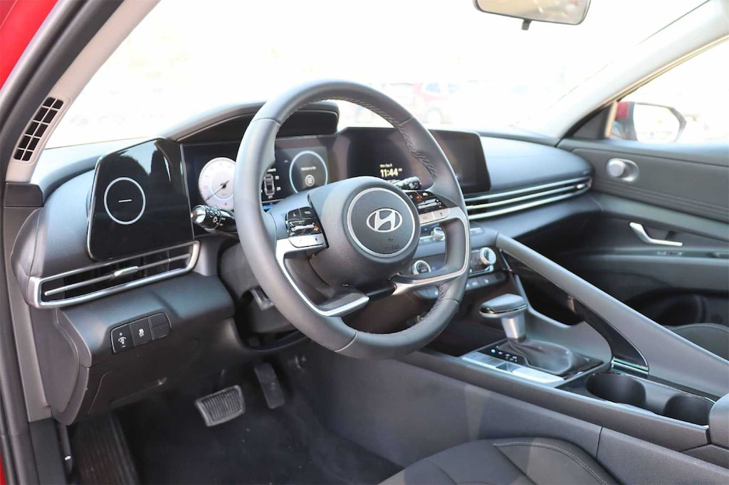 LOCAL TRADE, BLUETOOTH, Elantra SEL Convenience, 4D Sedan, I4, CVT, FWD, Red, Black Cloth, 17 x 7.0J Alloy Wheels, 4-Wheel Disc Brakes, 6 Speakers, ABS brakes, Air Conditioning, Alloy wheels, AM/FM radio: SiriusXM, Apple CarPlay & Android Auto, Auto High-beam Headlights, Automatic temperature control, Brake assist, Bumpers: body-color, Delay-off headlights, Driver door bin, Driver vanity mirror, Dual front impact airbags, Dual front side impact airbags, Electronic Stability Control, Emergency communication system: Bluelink+, Exterior Parking Camera Rear, Front anti-roll bar, Front Bucket Seats, Front Center Armrest, Front dual zone A/C, Front reading lights, Front wheel independent suspension, Fully automatic headlights, Heated door mirrors, Heated Front Bucket Seats, Heated front seats, Illuminated entry, Leather Shift Knob, Leather steering wheel, Low tire pressure warning, Navigation System, Occupant sensing airbag, Option Group 01, Outside temperature display, Overhead airbag, Overhead console, Panic alarm, Passenger door bin, Passenger vanity mirror, Power door mirrors, Power moonroof, Power steering, Power windows, Premium Cloth Seat Trim, Radio: AM/FM/HD/SiriusXM Display Audio, Rear seat center armrest, Rear side impact airbag, Rear window defroster, Remote keyless entry, Security system, Speed control, Speed-sensing steering, Split folding rear seat, Steering wheel mounted audio controls, Tachometer, Telescoping steering wheel, Tilt steering wheel, Traction control, Trip computer, Variably intermittent wipers, Elantra SEL Convenience, 4D Sedan, I4, CVT, FWD, Red, Black Cloth.