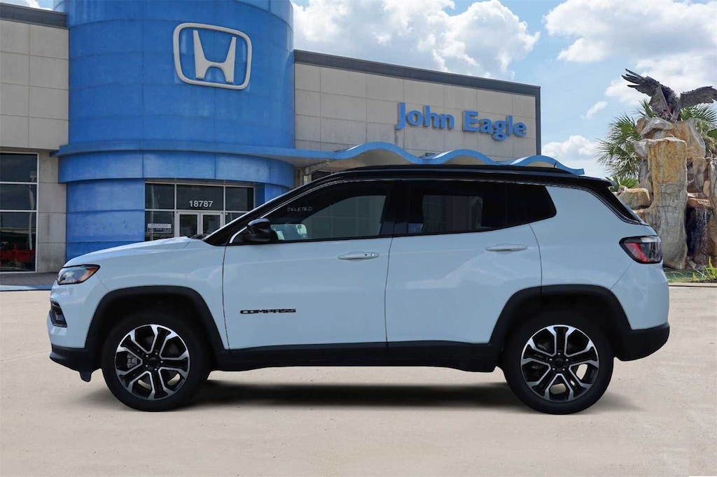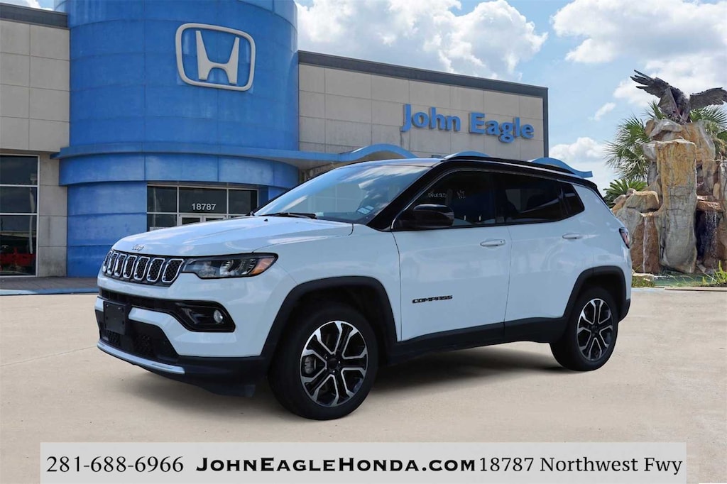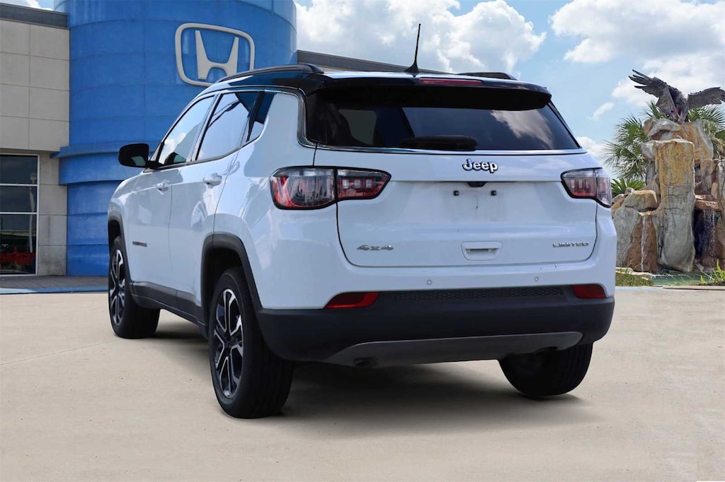 LOCAL TRADE, BLUETOOTH, CLEAN CARFAX, NON-SMOKER, CARFAX ONE OWNER, Service Records Available!, Remainder of Factory Warranty Still Applies!, ** HEATED SEATS, ** REARVIEW CAMERA, ** NAVIGATION SYSTEM, ** KEYLESS ENTRY, ** APPLE CARPLAY, ** BLIND SPOT ALERT, ** KEYLESS START, ** PREMIUM WHEELS, ** LANE DEPARTURE WARNING, ** SATELLITE RADIO, ** STEERING WHEEL CONTROLS, ** ALARM SYSTEM, ** WIFI HOTSPOT, ** AUXILIARY AUDIO INPUT, Compass Limited, 4D Sport Utility, 2.0L I4 DOHC, 8-Speed Automatic, 4WD, Bright White Clearcoat, 10.1 Touchscreen Display, 3.73 Final Drive Ratio, 4-Wheel Disc Brakes, 4G LTE Wi-Fi Hot Spot, 6 Speakers, ABS brakes, Air Conditioning, Alloy wheels, AM/FM radio: SiriusXM, Auto High-beam Headlights, Auto-dimming Rear-View mirror, Automatic temperature control, Brake assist, Bumpers: body-color, Compass, Delay-off headlights, Disassociated Touchscreen Display, Driver door bin, Driver vanity mirror, Dual front impact airbags, Dual front side impact airbags, Electronic Stability Control, Emergency communication system: Jeep Connect, For Details, Visit DriveUconnect.com, For More Info, Call 800-643-2112, Four wheel independent suspension, Front anti-roll bar, Front Bucket Seats, Front Center Armrest w/Storage, Front dual zone A/C, Front fog lights, Front License Plate Bracket, Front reading lights, Fully automatic headlights, Global Telematics Box Module (TBM), Heated door mirrors, Heated front seats, Heated steering wheel, Illuminated entry, Knee airbag, Leather Shift Knob, Leather steering wheel, Leatherette Seats, Low tire pressure warning, Occupant sensing airbag, Outside temperature display, Overhead airbag, Overhead console, Panic alarm, ParkView Rear Back-Up Camera, Passenger door bin, Passenger vanity mirror, Power door mirrors, Power driver seat, Power steering, Power windows, Quick Order Package 29G Limited, Radio: Uconnect 5 w/10.1 Display, Rain sensing wipers, Rear anti-roll bar, Rear seat center armrest, Rear window defroster, Rear window wiper, Remote keyless entry, Security system, SiriusXM Guardian - Included Trial (B), SiriusXM Radio Service, Speed control, Split folding rear seat, Spoiler, Steering wheel mounted audio controls, Tachometer, Telescoping steering wheel, Tilt steering wheel, Traction control, Trip computer, Turn signal indicator mirrors, Variably intermittent wipers, Wheels: 18 x 7 Painted Diamond Cut Aluminum, Compass Limited, 4D Sport Utility, 2.0L I4 DOHC, 8-Speed Automatic, 4WD, Bright White Clearcoat, 10.1 Touchscreen Display, 3.73 Final Drive Ratio, 4-Wheel Disc Brakes, 4G LTE Wi-Fi Hot Spot, 6 Speakers, ABS brakes, Air Conditioning, Alloy wheels, AM/FM radio: SiriusXM, Auto High-beam Headlights, Auto-dimming Rear-View mirror, Automatic temperature control, Brake assist, Bumpers: body-color, Compass, Delay-off headlights, Disassociated Touchscreen Display, Driver door bin, Driver vanity mirror, Dual front impact airbags, Dual front side impact airbags, Electronic Stability Control, Emergency communication system: Jeep Connect, For Details, Visit DriveUconnect.com, For More Info, Call 800-643-2112, Four wheel independent suspension, Front anti-roll bar, Front Bucket Seats, Front Center Armrest w/Storage, Front dual zone A/C, Front fog lights, Front License Plate Bracket, Front reading lights, Fully automatic headlights, Global Telematics Box Module (TBM), Heated door mirrors, Heated front seats, Heated steering wheel, Illuminated entry, Knee airbag, Leather Shift Knob, Leather steering wheel, Leatherette Seats, Low tire pressure warning, Occupant sensing airbag, Outside temperature display, Overhead airbag, Overhead console, Panic alarm, ParkView Rear Back-Up Camera, Passenger door bin, Passenger vanity mirror, Power door mirrors, Power driver seat, Power steering, Power windows, Quick Order Package 29G Limited, Radio: Uconnect 5 w/10.1 Display, Rain sensing wipers, Rear anti-roll bar, Rear seat center armrest, Rear window defroster, Rear window wiper, Remote keyless entr