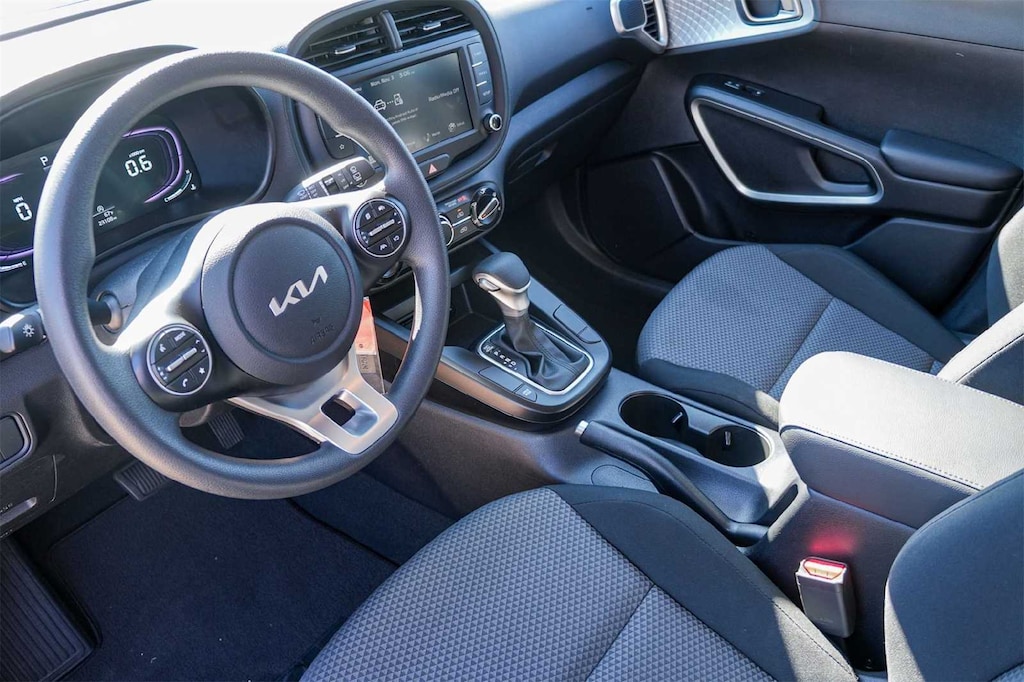LOCAL TRADE, BLUETOOTH, CLEAN CARFAX, NON-SMOKER, CARFAX ONE OWNER, Soul LX, 4D Hatchback, 2.0L I4 DOHC, CVT, FWD, Gravity Gray, Black Cloth, 4-Wheel Disc Brakes, 6 Speakers, 6.5J x 16 Alloy Wheels, 6.5J x 16 Steel Wheels, ABS brakes, Air Conditioning, AM/FM radio, Apple CarPlay & Android Auto, Auto High-beam Headlights, Blind-Spot Collision-Avoidance Assist, Brake assist, Bumpers: body-color, Carpeted Floor Mats, Compass, Delay-off headlights, Driver door bin, Driver vanity mirror, Dual front impact airbags, Dual front side impact airbags, Electronic Stability Control, Exterior Parking Camera Rear, Front anti-roll bar, Front Bucket Seats, Front Center Armrest, Front reading lights, Front wheel independent suspension, Fully automatic headlights, Illuminated entry, Lane Change Assist, Low tire pressure warning, LX Technology Package, Occupant sensing airbag, Outside temperature display, Overhead airbag, Overhead console, Panic alarm, Passenger door bin, Passenger vanity mirror, Power door mirrors, Power steering, Power windows, Radio data system, Radio: AM/FM/MP3/HD Audio System, Rear Cross-Traffic Collision Avoidance Assist, Rear window defroster, Rear window wiper, Remote keyless entry, Speed control, Speed-sensing steering, Split folding rear seat, Steering wheel mounted audio controls, Tachometer, Telescoping steering wheel, Tilt steering wheel, Traction control, Trip computer, Variably intermittent wipers, Woven & Tricot Cloth Seat Trim, Soul LX, 4D Hatchback, 2.0L I4 DOHC, CVT, FWD, Gravity Gray, Black Cloth.