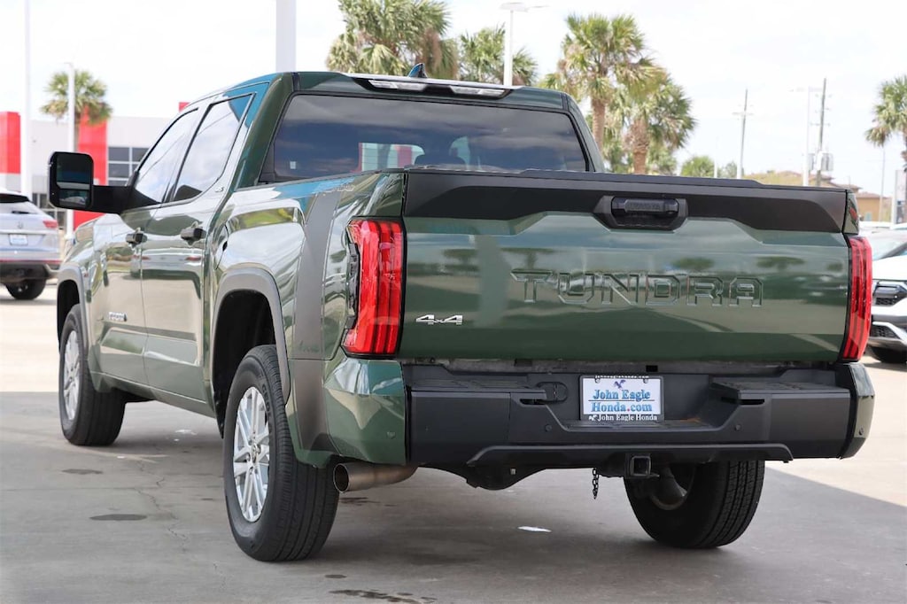 BLUETOOTH, NON-SMOKER, CARFAX ONE OWNER, Center Console Safe, BSM Tow Mirrors (black), Non-Skid Spray-On Bed Liner, Tundra SR5, 4D CrewMax, 3.4L V6, 10-Speed Automatic, 4WD, Army Green, Blk/Black Cloth, 18 Alloy Wheels, 3.31 Axle Ratio, 32 Gallon Fuel Tank, 4-Way Adjustable Front Bucket Seats, 4-Wheel Disc Brakes, 9 Speakers, ABS brakes, Air Conditioning, Alloy wheels, AM/FM radio: SiriusXM, Apple CarPlay/Android Auto, Auto High-beam Headlights, Automatic temperature control, Blind Spot Monitor w/Lane Change Assist, Brake assist, Bumpers: body-color, Delay-off headlights, Driver door bin, Driver vanity mirror, Dual front impact airbags, Dual front side impact airbags, Electronic Stability Control, Emergency communication system: Safety Connect with 1-year trial, Exterior Parking Camera Rear, Fabric Seat Trim, Front anti-roll bar, Front Bucket Seats, Front Center Armrest, Front fog lights, Front reading lights, Front wheel independent suspension, Fully automatic headlights, Heated door mirrors, Illuminated entry, Knee airbag, Low tire pressure warning, Occupant sensing airbag, Outside temperature display, Overhead airbag, Overhead console, Panic alarm, Parking Support Alert/Brake, Passenger door bin, Passenger vanity mirror, Power door mirrors, Power steering, Power windows, Radio data system, Radio: Audio Multimedia System, Rear reading lights, Rear step bumper, Rear window defroster, Remote keyless entry, Safety Connect, Security system, Speed control, Speed-sensing steering, Split folding rear seat, SR5 Convenience Package, Steering wheel mounted audio controls, Tachometer, Telescoping steering wheel, Tilt steering wheel, Traction control, Trip computer, Turn signal indicator mirrors, Variably intermittent wipers, Voltmeter.