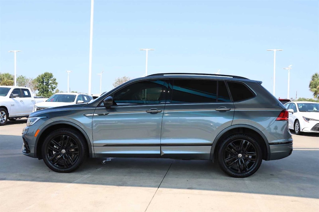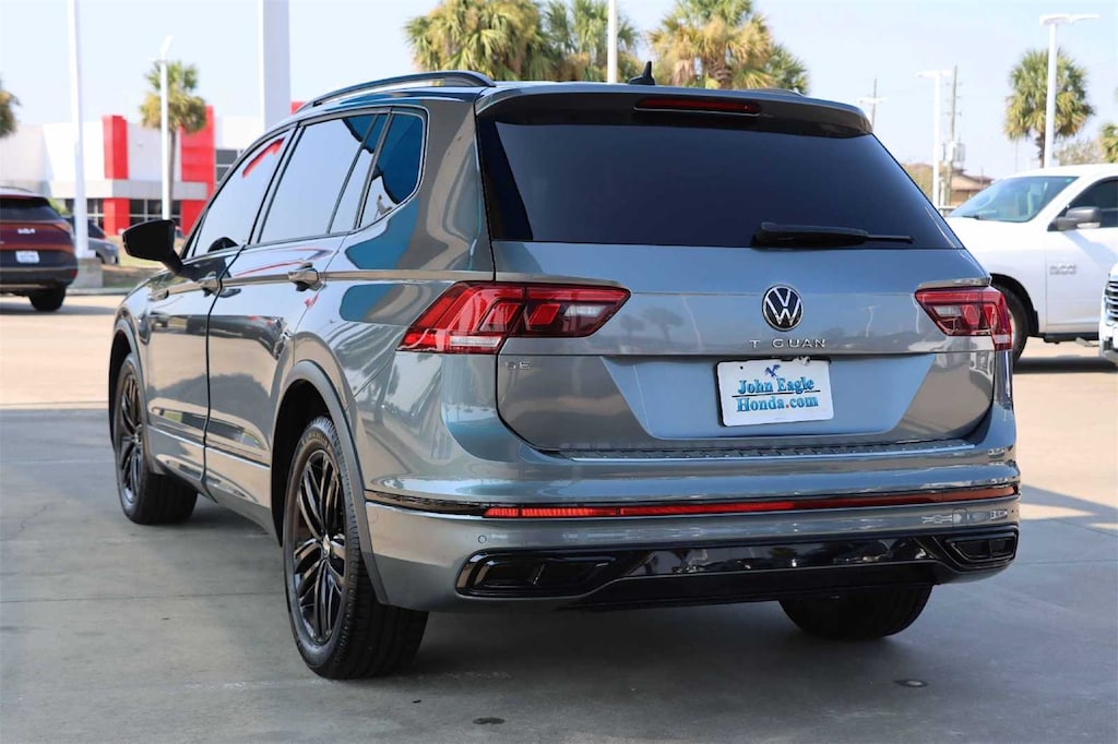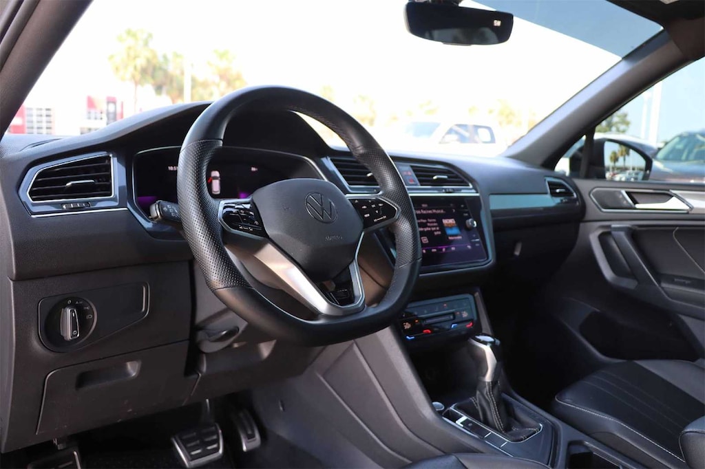 LOCAL TRADE, Tiguan 2.0T SE R-Line Black, 4D Sport Utility, 2.0L TSI DOHC, 8-Speed Automatic with Tiptronic, FWD, Silver, Blk/Black Leather, 3.33 Axle Ratio, 3rd row seats: bench, 4-Wheel Disc Brakes, 4-Wheel Independent Suspension, 6 Speakers, ABS brakes, Air Conditioning, Alloy wheels, AM/FM radio: SiriusXM with 360L, Auto-dimming Rear-View mirror, Automatic temperature control, Brake assist, Bumpers: body-color, Compass, Delay-off headlights, Driver door bin, Driver vanity mirror, Dual front impact airbags, Dual front side impact airbags, Electronic Stability Control, Emergency communication system: Car-Net, Exterior Parking Camera Rear, Four wheel independent suspension, Front anti-roll bar, Front Bucket Seats, Front Center Armrest, Front dual zone A/C, Front reading lights, Fully automatic headlights, Heated door mirrors, Heated Front Comfort Seats, Heated front seats, Illuminated entry, Leather Shift Knob, Leather steering wheel, Low tire pressure warning, Occupant sensing airbag, Outside temperature display, Overhead airbag, Overhead console, Panic alarm, Passenger door bin, Passenger vanity mirror, Perforated V-Tex Leatherette Seating Surfaces, Power door mirrors, Power driver seat, Power Liftgate, Power moonroof, Power steering, Power windows, Radio data system, Radio: MIB3 Composition Media AM/FM/HD, Rain sensing wipers, Rear anti-roll bar, Rear reading lights, Rear seat center armrest, Rear window defroster, Rear window wiper, Remote keyless entry, Roof rack: rails only, Security system, Speed control, Speed-sensing steering, Split folding rear seat, Spoiler, Sport steering wheel, Steering wheel mounted audio controls, Tachometer, Telescoping steering wheel, Tilt steering wheel, Traction control, Trip computer, Variably intermittent wipers, Wheels: 19 Black Twin 5-Spoke Alloy, Turn signal indicator mirrors, Tiguan 2.0T SE R-Line Black, 4D Sport Utility, 2.0L TSI DOHC, 8-Speed Automatic with Tiptronic, FWD, Silver, Blk/Black Leather, 3.33 Axle Ratio, 3rd row seats: bench, 4-Wheel Disc Brakes, 4-Wheel Independent Suspension, 6 Speakers, ABS brakes, Air Conditioning, Alloy wheels, AM/FM radio: SiriusXM with 360L, Auto-dimming Rear-View mirror, Automatic temperature control, Brake assist, Bumpers: body-color, Compass, Delay-off headlights, Driver door bin, Driver vanity mirror, Dual front impact airbags, Dual front side impact airbags, Electronic Stability Control, Emergency communication system: Car-Net, Exterior Parking Camera Rear, Four wheel independent suspension, Front anti-roll bar, Front Bucket Seats, Front Center Armrest, Front dual zone A/C, Front reading lights, Fully automatic headlights, Heated door mirrors, Heated Front Comfort Seats, Heated front seats, Illuminated entry, Leather Shift Knob, Leather steering wheel, Low tire pressure warning, Occupant sensing airbag, Outside temperature display, Overhead airbag, Overhead console, Panic alarm, Passenger door bin, Passenger vanity mirror, Perforated V-Tex Leatherette Seating Surfaces, Power door mirrors, Power driver seat, Power Liftgate, Power moonroof, Power steering, Power windows, Radio data system, Radio: MIB3 Composition Media AM/FM/HD, Rain sensing wipers, Rear anti-roll bar, Rear reading lights, Rear seat center armrest, Rear window defroster, Rear window wiper, Remote keyless entry, Roof rack: rails only, Security system, Speed control, Speed-sensing steering, Split folding rear seat, Spoiler, Sport steering wheel, Steering wheel mounted audio controls, Tachometer, Telescoping steering wheel, Tilt steering wheel, Traction control, Trip computer, Variably intermittent wipers, Wheels: 19 Black Twin 5-Spoke Alloy.
